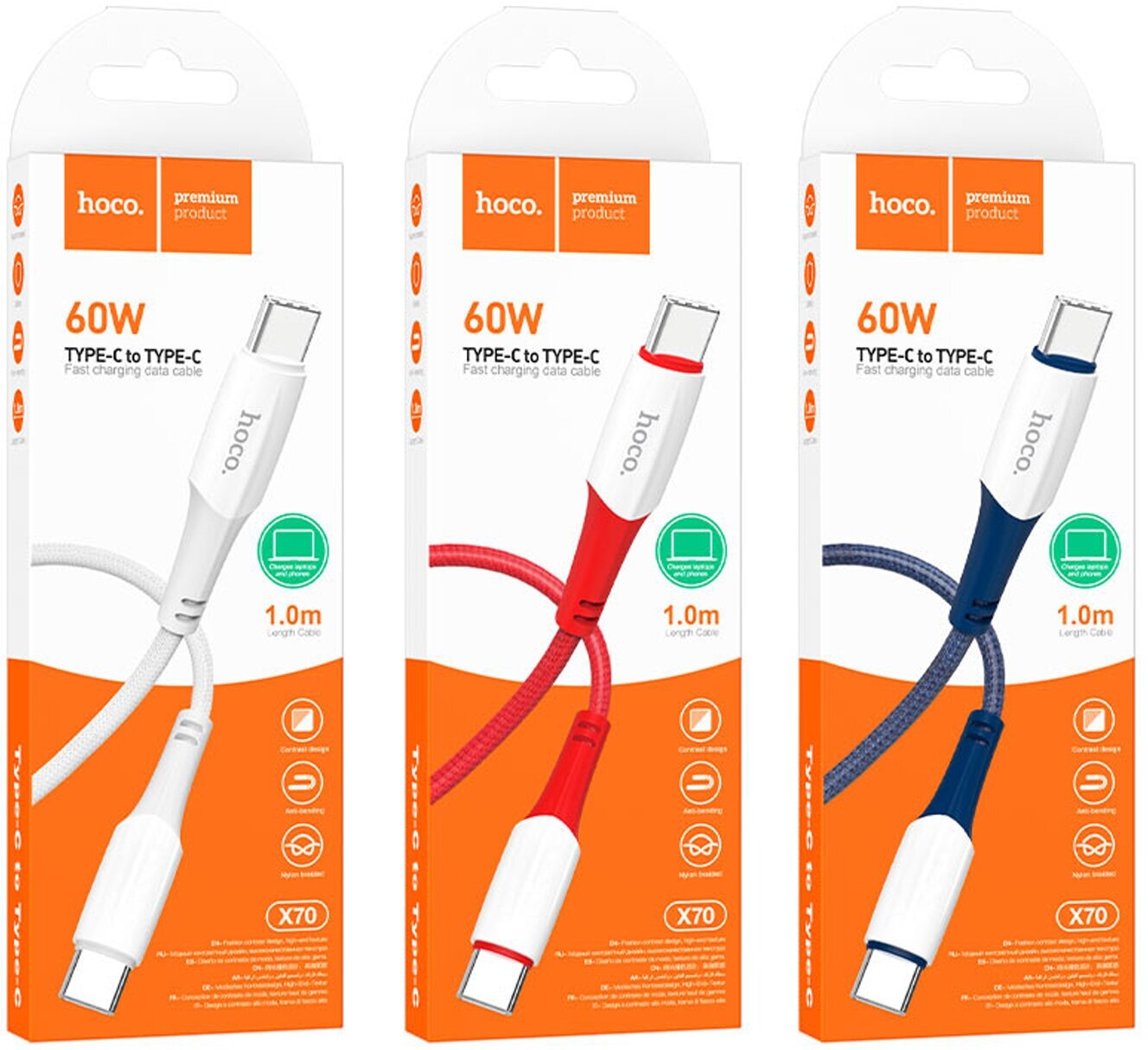 Кабель Type-C на Type-C, HOCO, X70, 1м, 60W, синий