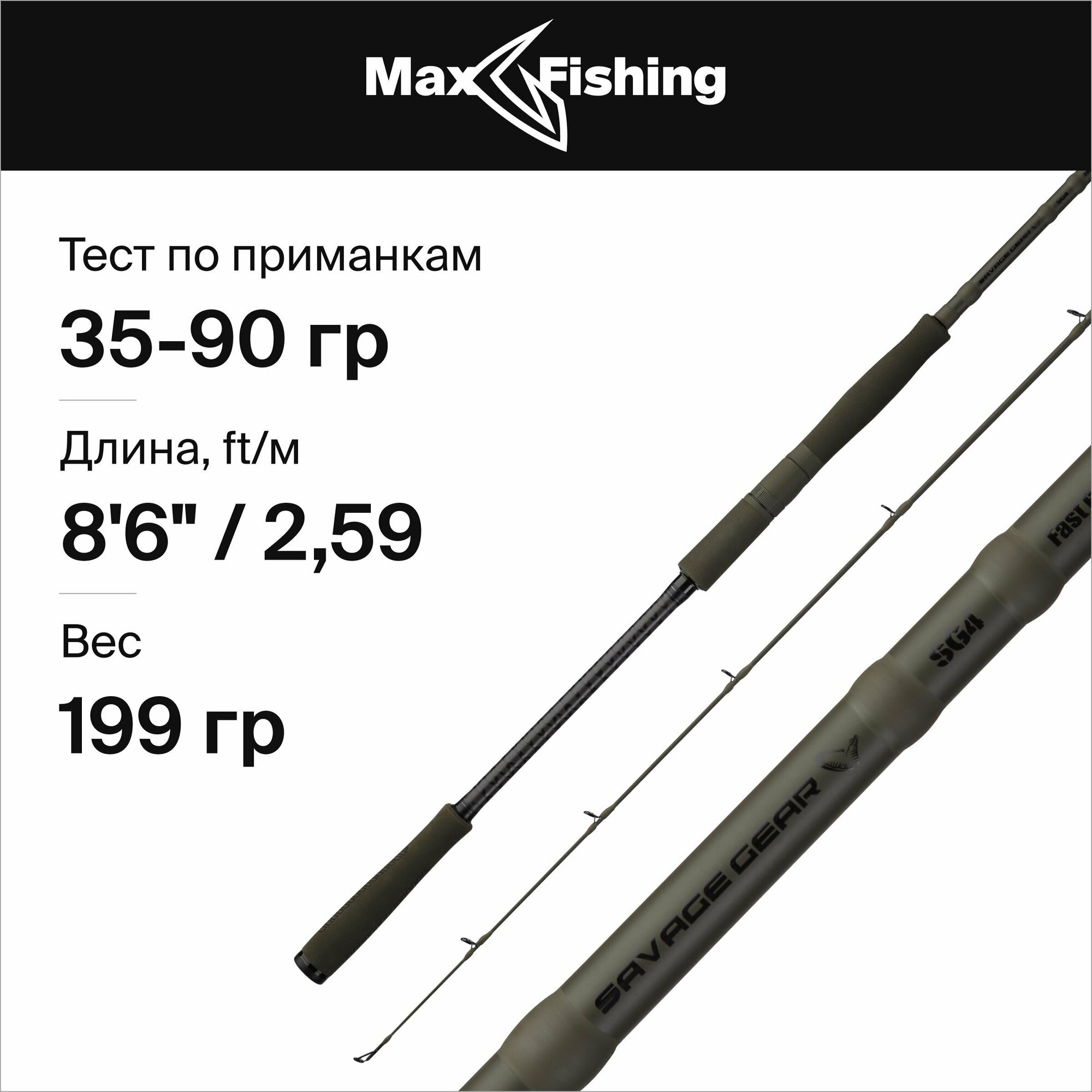 Спиннинг для рыбалки Savage Gear SG4 Fast Game 8'6"/259см 35-90гр, 259 см, для ловли окуня, щуки, судака, жереха, удилище спиннинговое интересное: