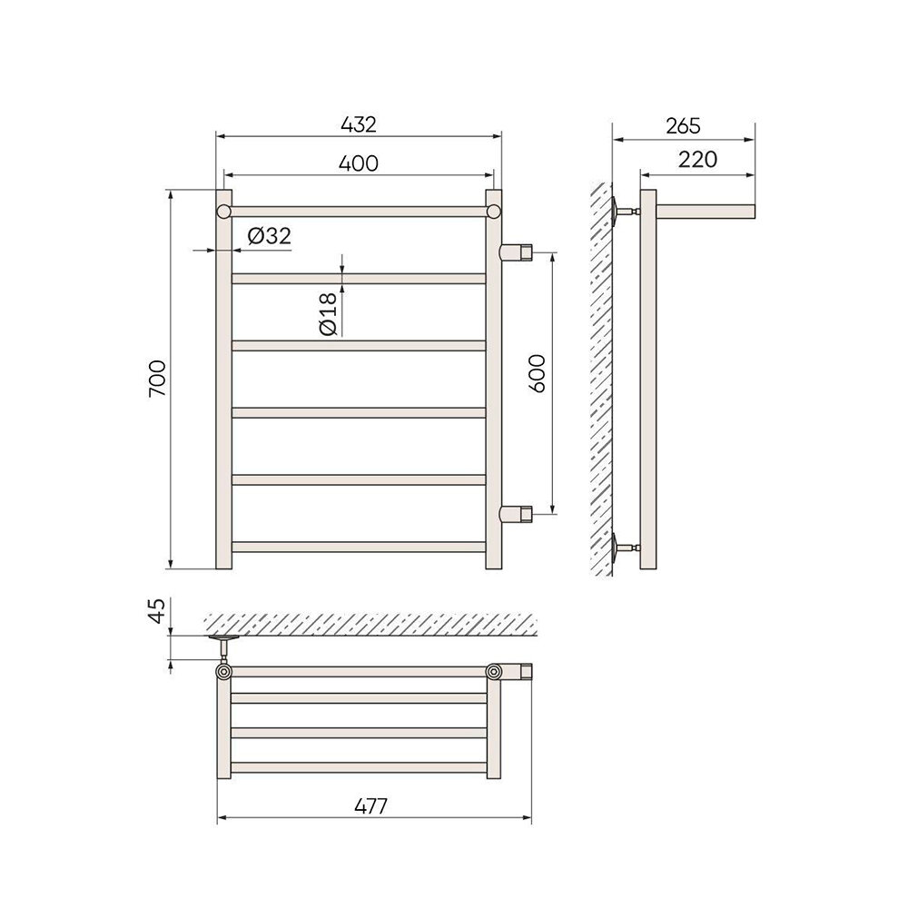 Полотенцесушитель водяной INDIGO Line с полкой 70/40 межосевое расстояние 60, боковое подключение справа