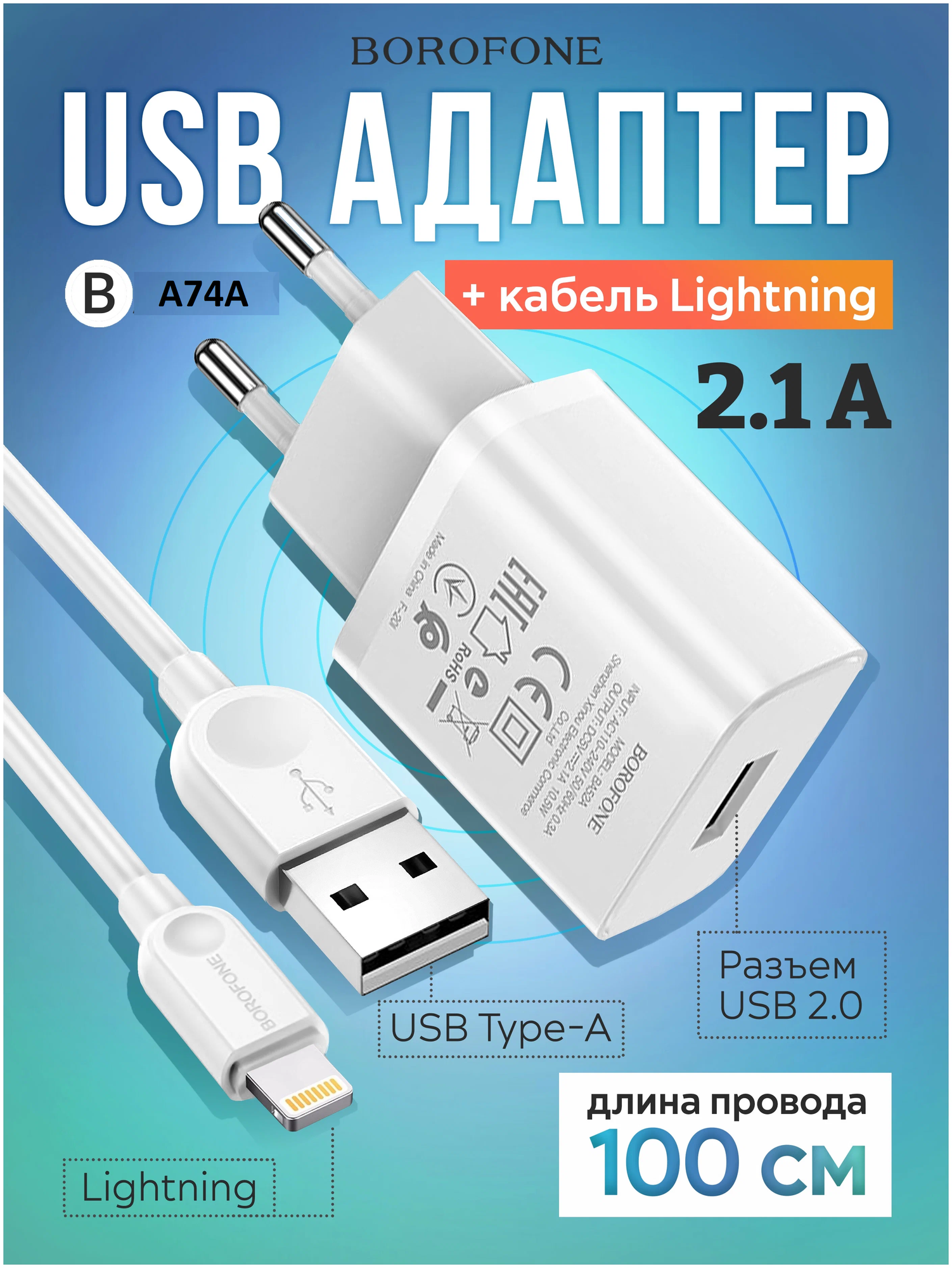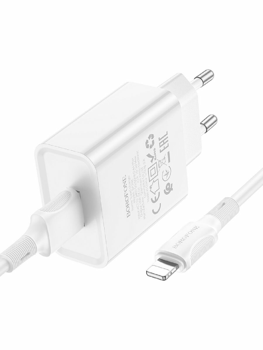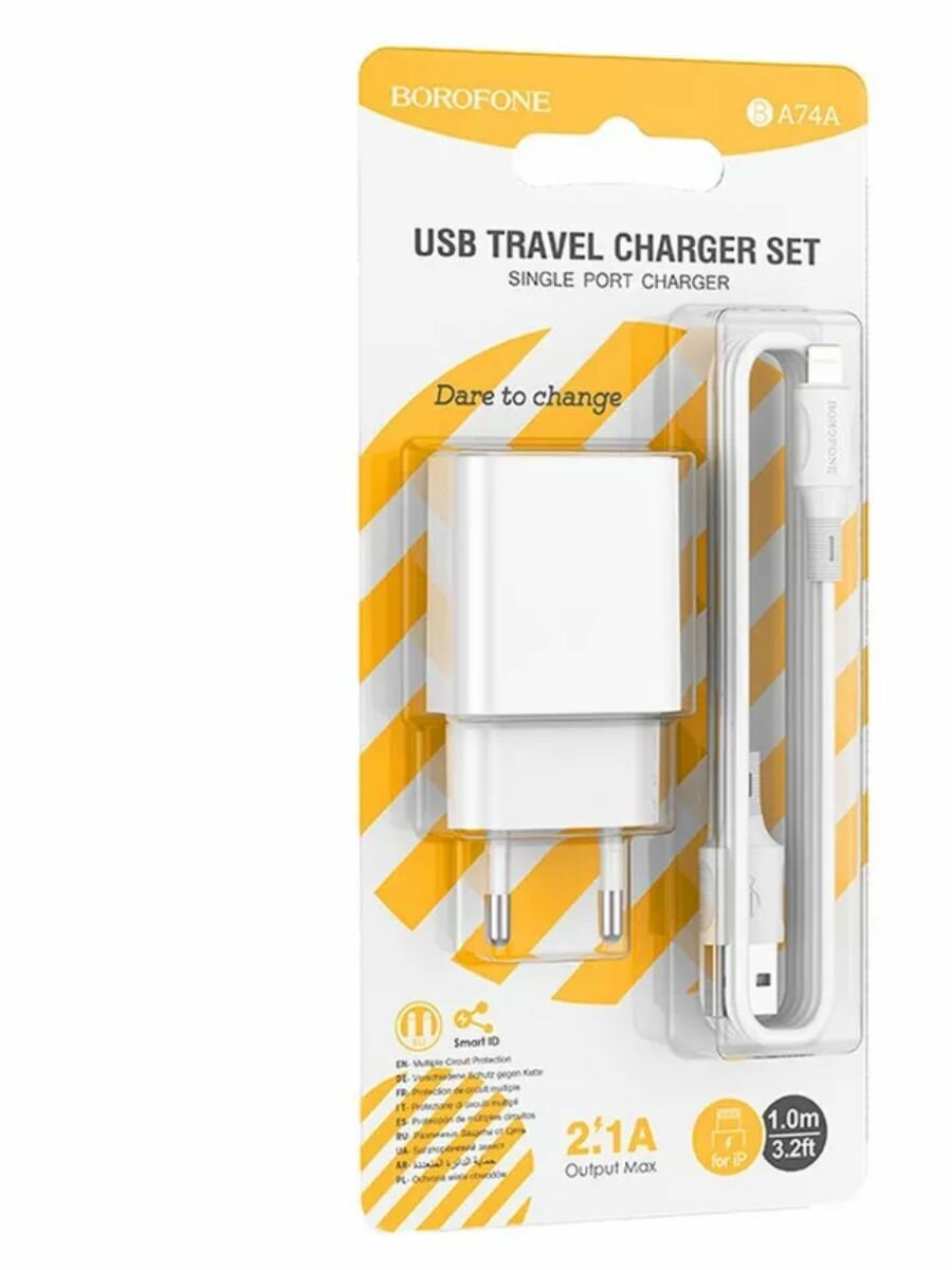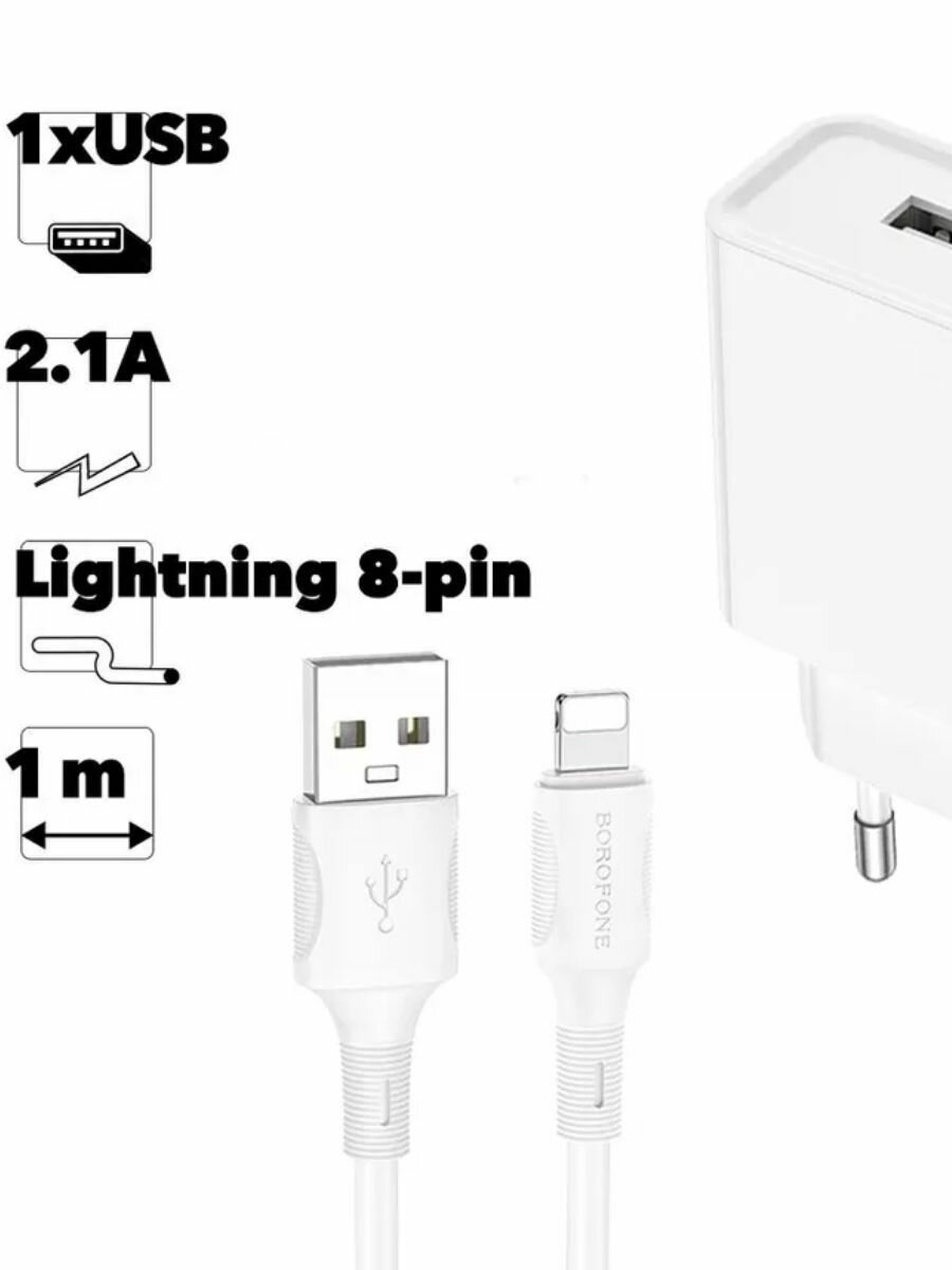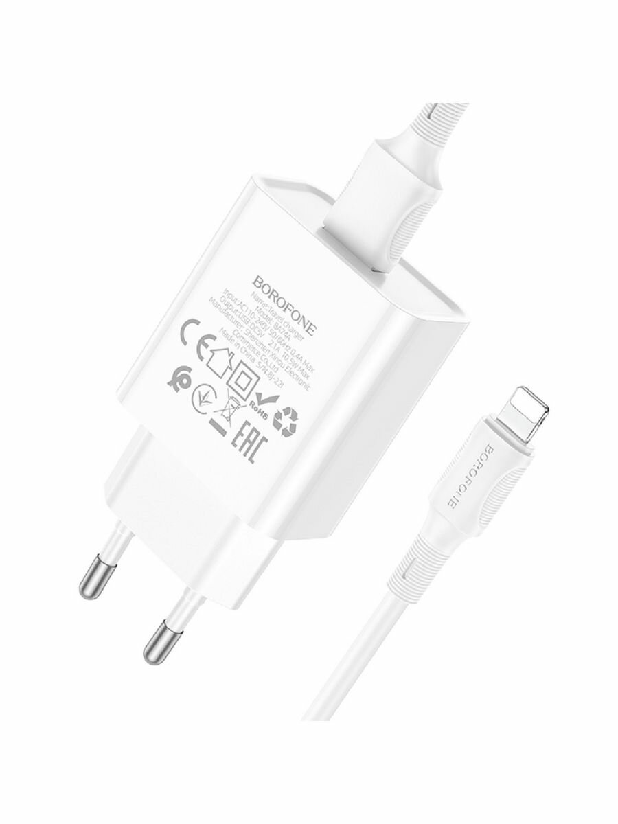 Сетевое ЗУ Borofone BA74A + кабель Lightning (1USB/2.1A) белое интересное: