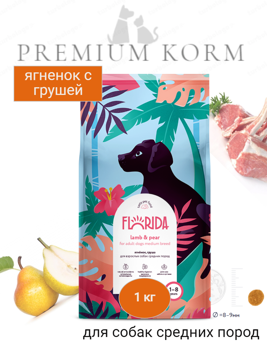 FLORIDA Сухой корм для щенков средних пород с ягненком и грушей 1 кг интересное: