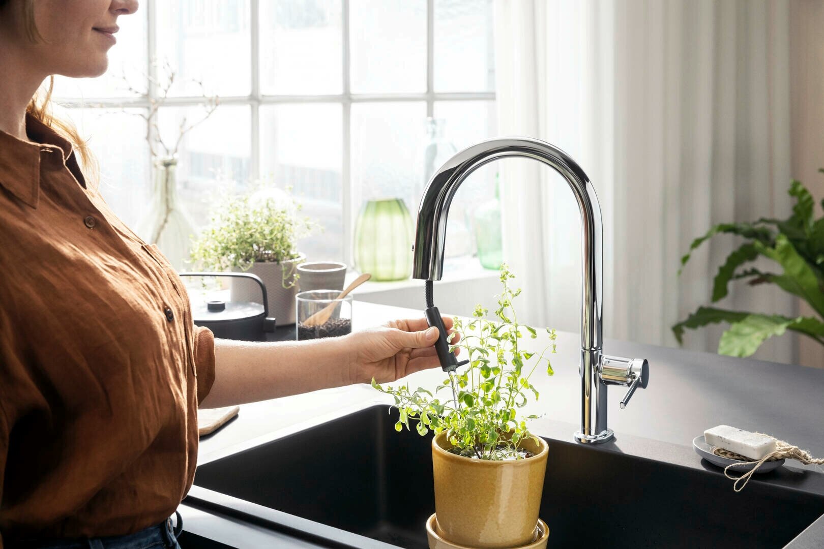 Смеситель для кухонной мойки hansgrohe Aqittura M91 210, с вытяжным изливом 1jet и функцией фильтрации, без фильтра в комплекте 76803000, хром интересное: