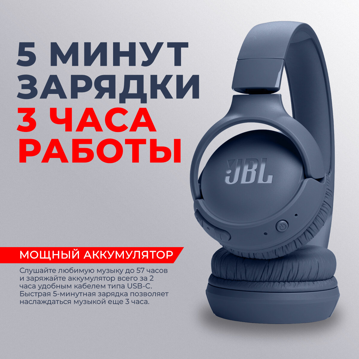 Беспроводные наушники JBL Tune 520BT, синий. 450 мА·ч. USB Type-C