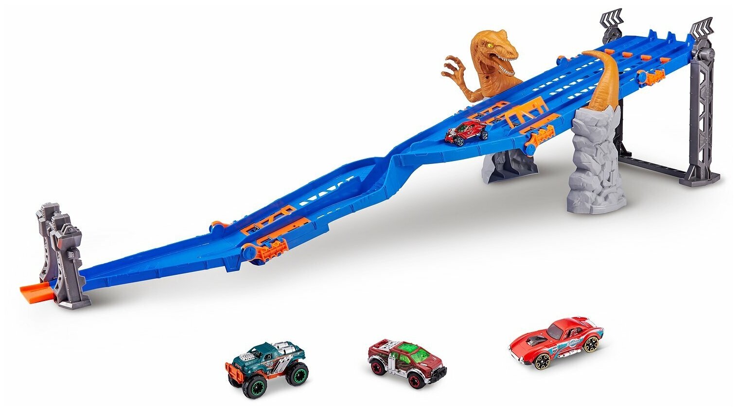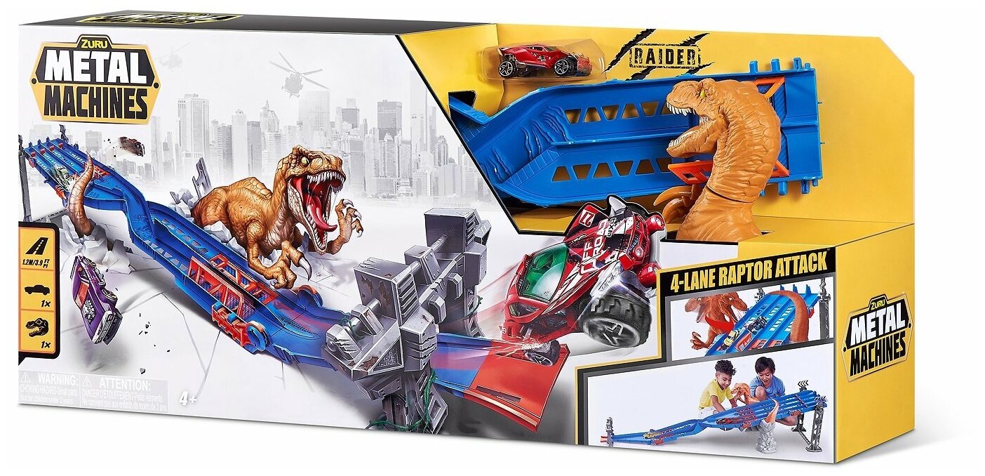 Игровой набор ZURU METAL MACHINES 4-Lane Raptor Attack Track / Четырехполосное безумие с машинкой, игрушки для мальчиков, 6740