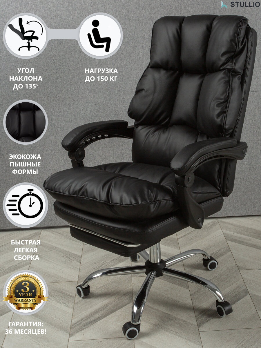 Купить Мягкое компьютерное кресло для дома и офиса, с подставкой для ног, из экокожи, цвет черный