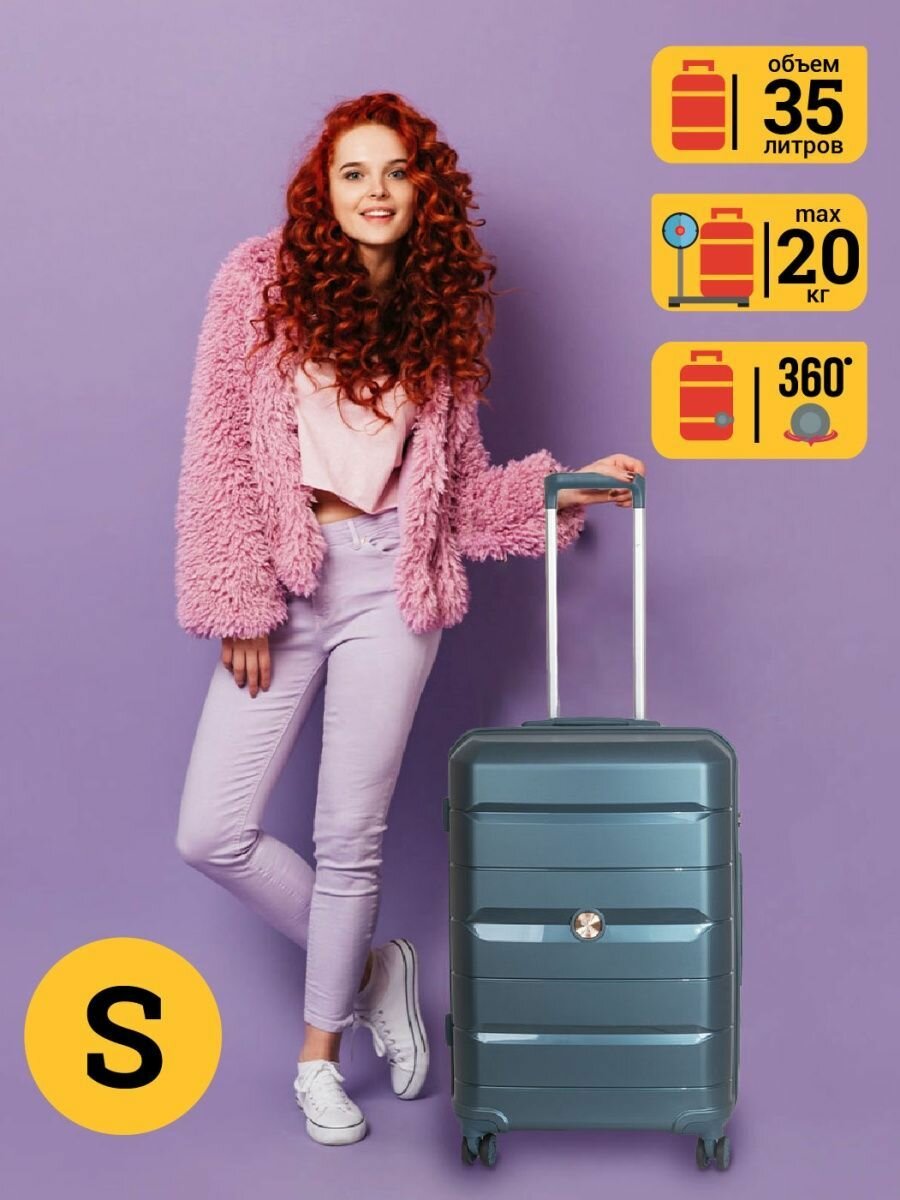 Чемодан S облегченный из полипропилена Supra Luggage, замок TSA, 35 литров, 4 колеса с поворотом на 360 градусов, 39X22X57 см