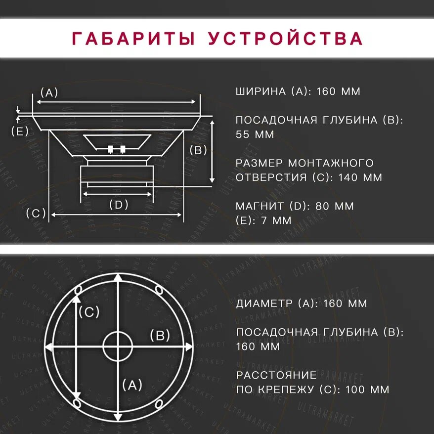 | Размеры НЧ/СЧ-динамика | 160мм/40мм мм |