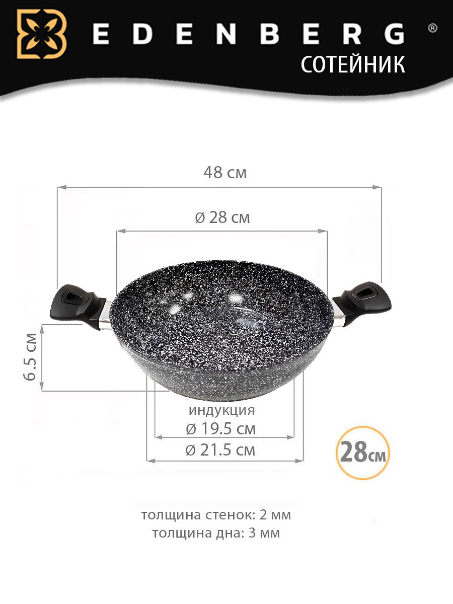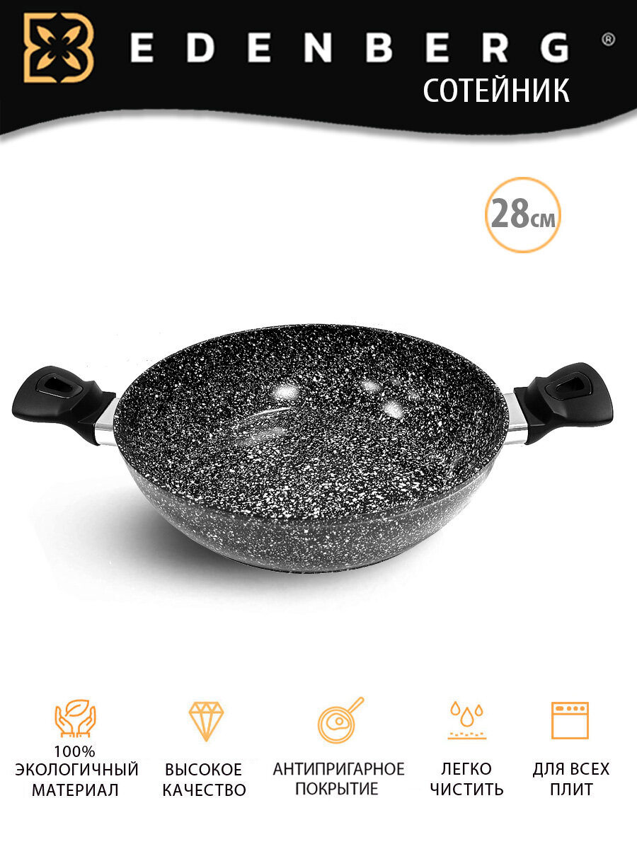 Набор посуды из 3 предметов Edenberg из кованного алюминия 20 см, 24 сми жаровня 28 см с гранитным покрытием интересное: