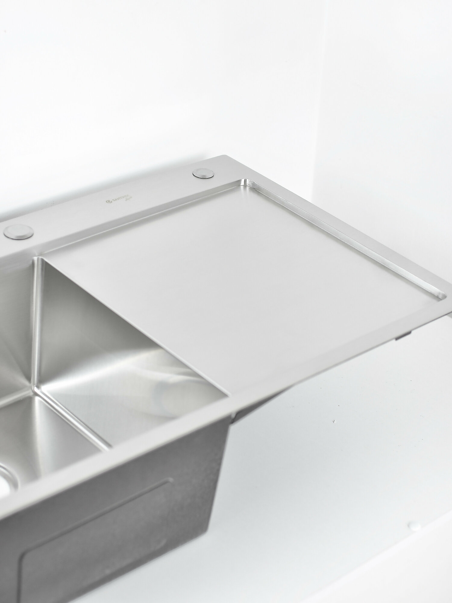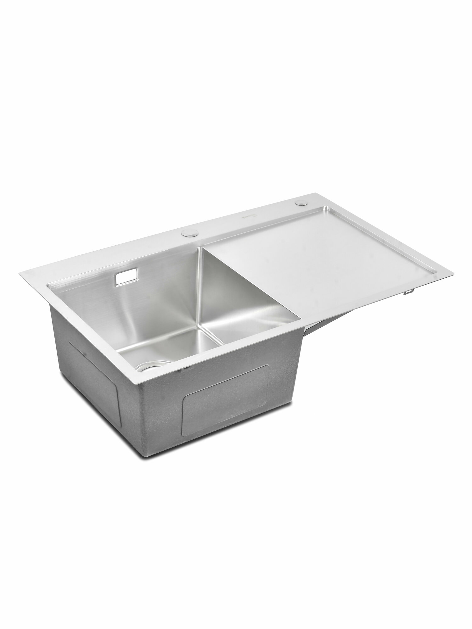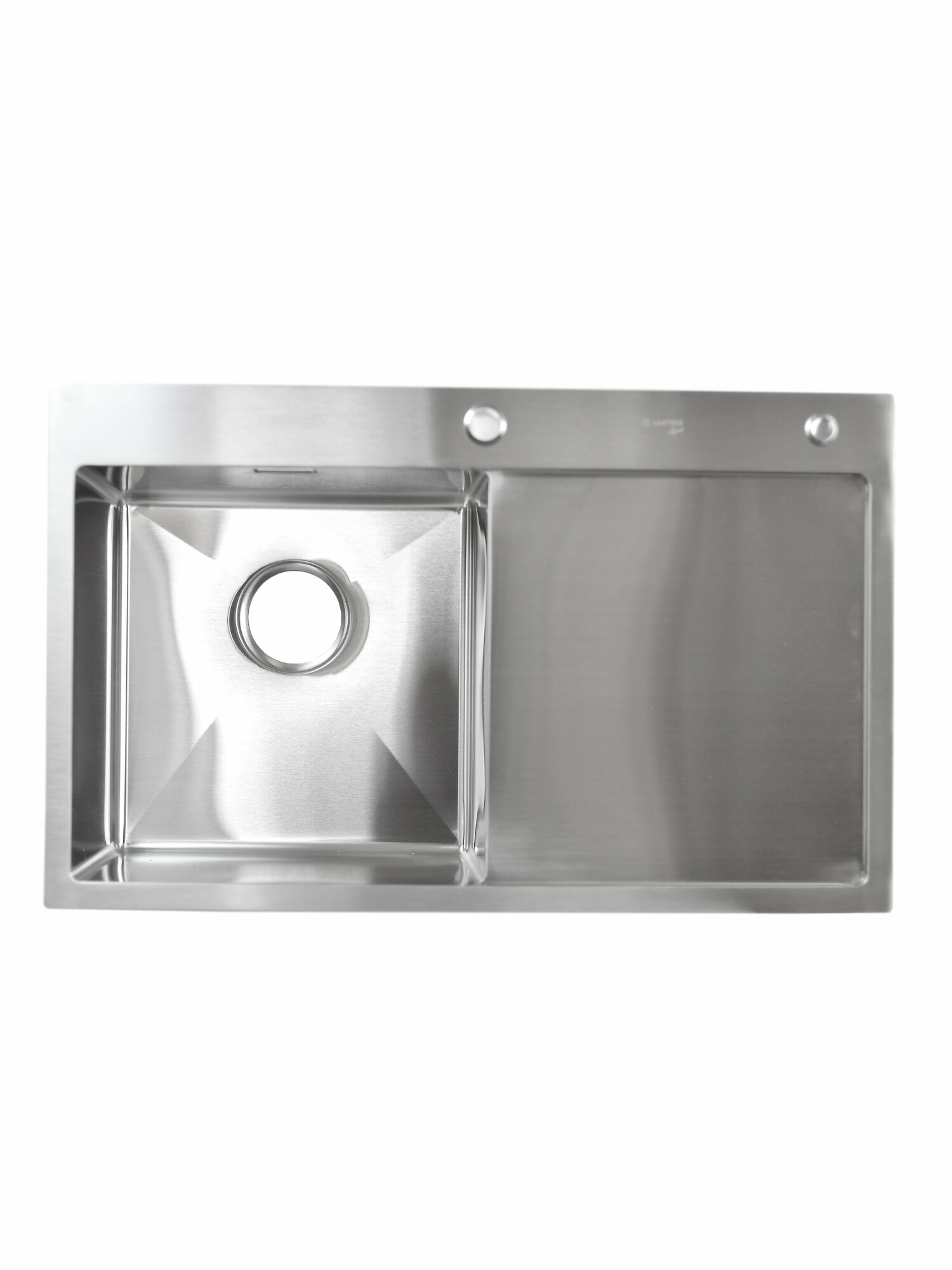 Мойка нержавеющая врезная 780х480х220 т 3,0 сатин D7848HLS левая (+ сифон +дозатор + колландер 420х220) SANTREK