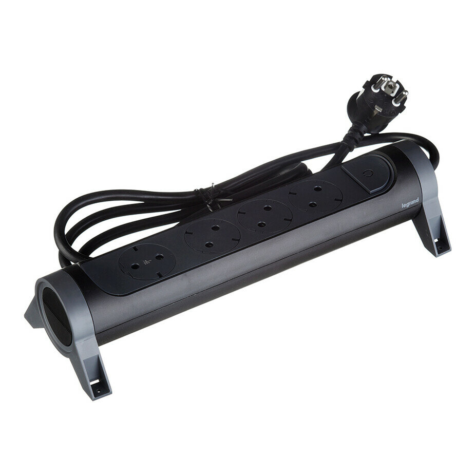 Удлинитель с поворотным основанием серии Комфорт 4 x 2К+З с кабелем 1,5 м., цвет: черный, LEGRAND 694530 (1 шт.)
