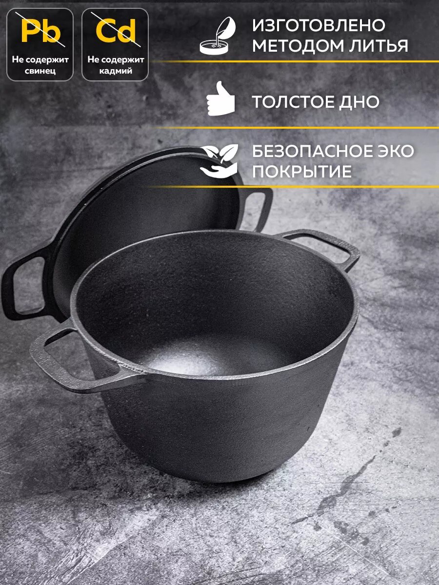 Ниже Вы можете прочитать отзывы на Кастрюля чугунная с крышкой-сковородой на 6 л., ознакомится с подробными характеристиками, посмотреть интересные обзоры и фотографии на Кастрюля чугунная с крышкой-сковородой на 6 л..