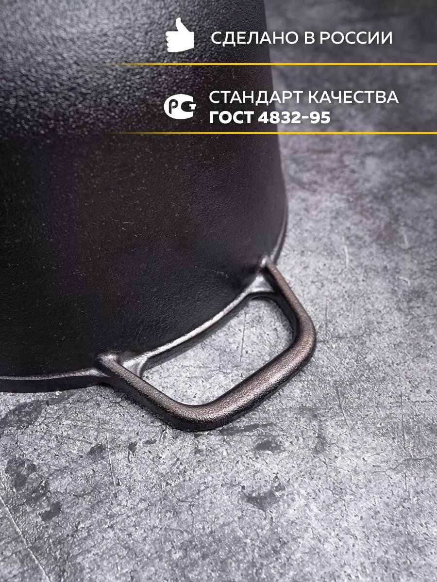 Кастрюля чугунная 6 л. с чугунной крышкой-сковородой Гардарика