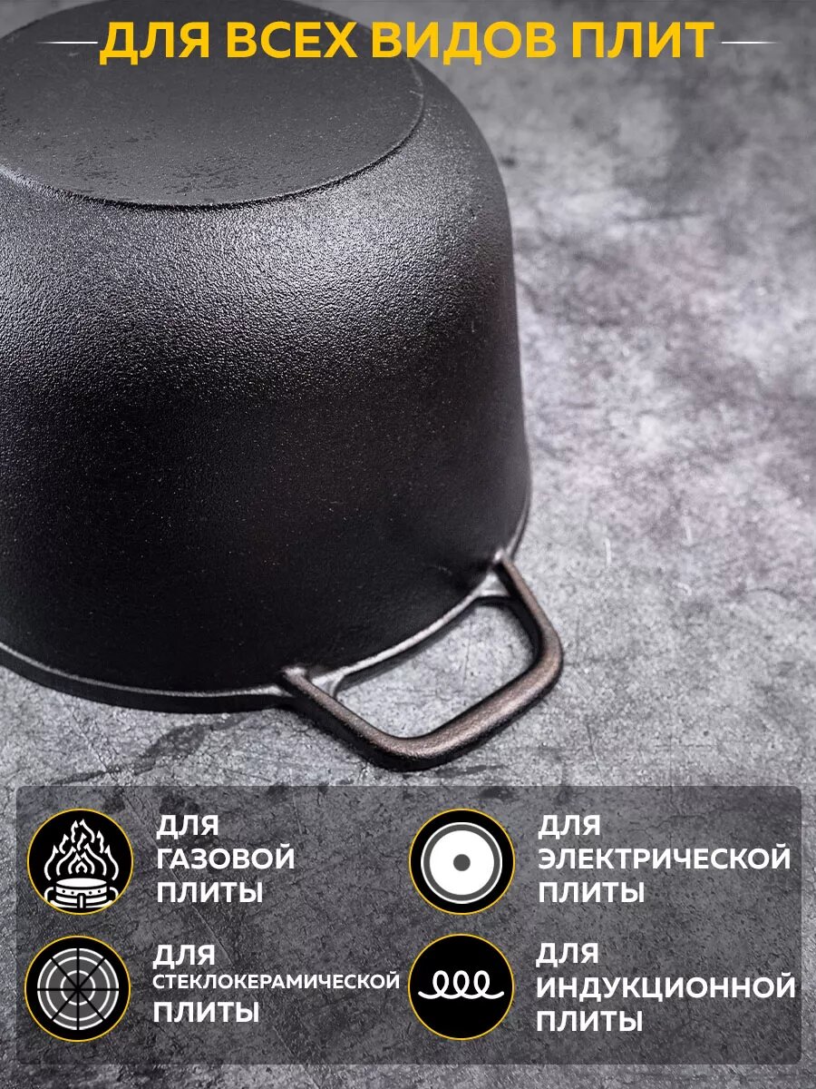 Кастрюля чугунная с крышкой чугунной, 3л, 22см Гардарика
