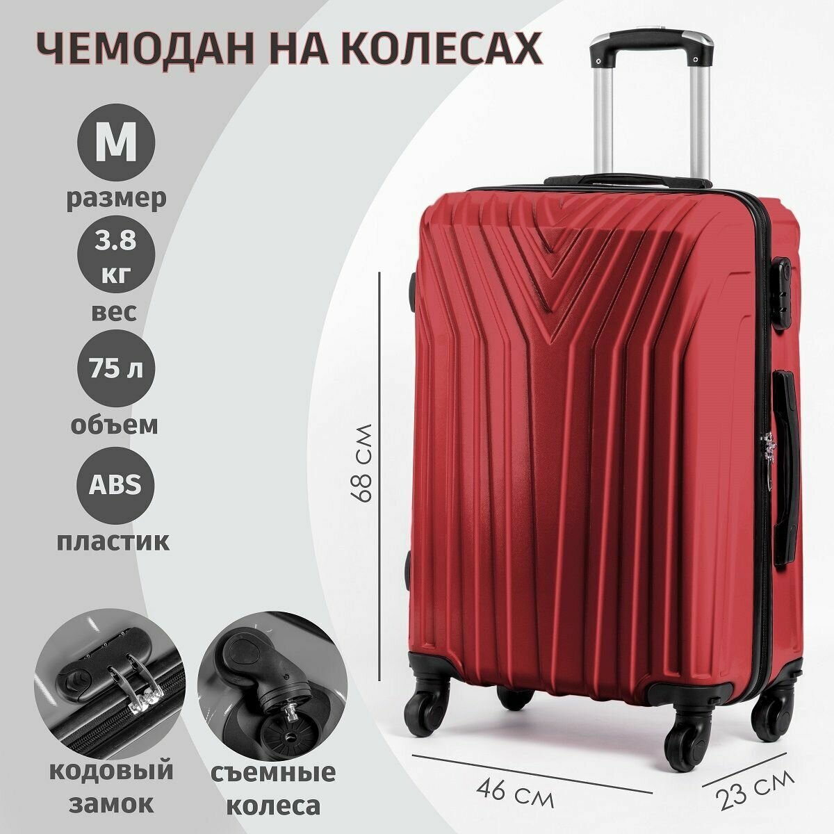 СохранитьЧемодан средний на колёсах 68х46х23см красный интересное: