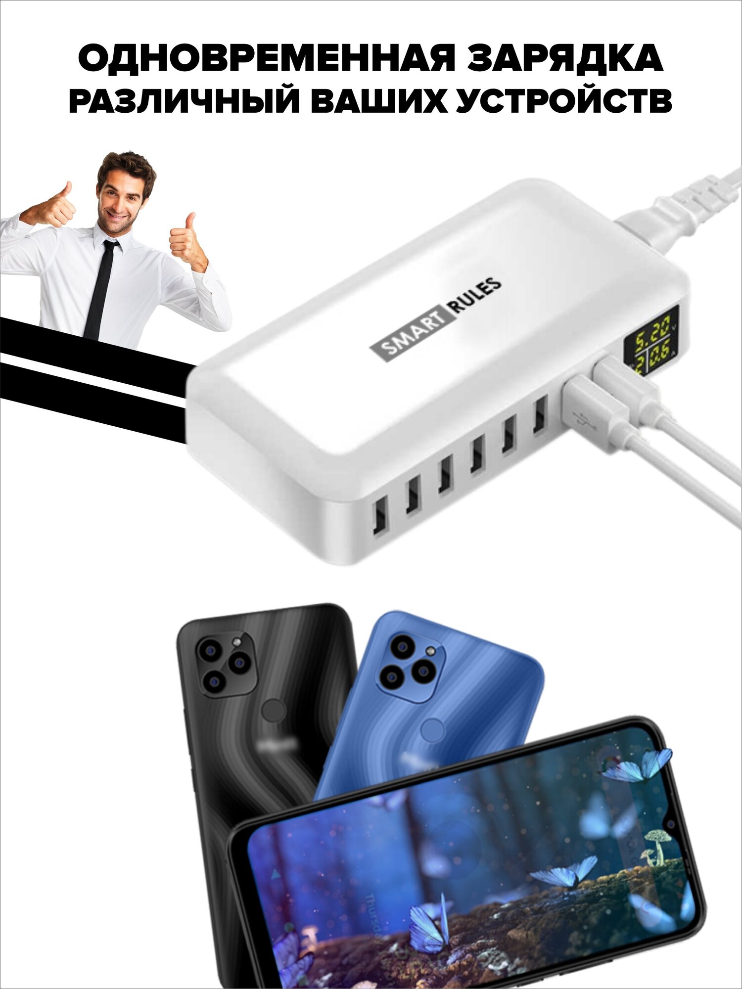 | Отзыв: | Доступный и качественный девайс в данной категории за приемлемую цену. Вся семья может подключиться. Удобно,что стоит в одном месте как заправка, не надо бегать искать зарядку. Подключал одновременно несколько устройств, не перегревается. |