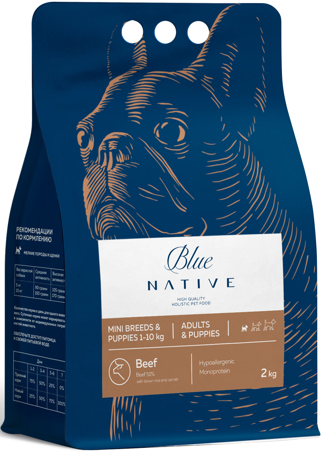Купить BLUE NATIVE Сухой корм для щенков и собак мелких пород говядина 2 кг