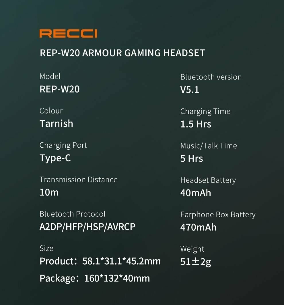 Наушники беспроводные игровые Recci REP-W20 Armour TWS Gaming Earphone - Темно-серый интересное: