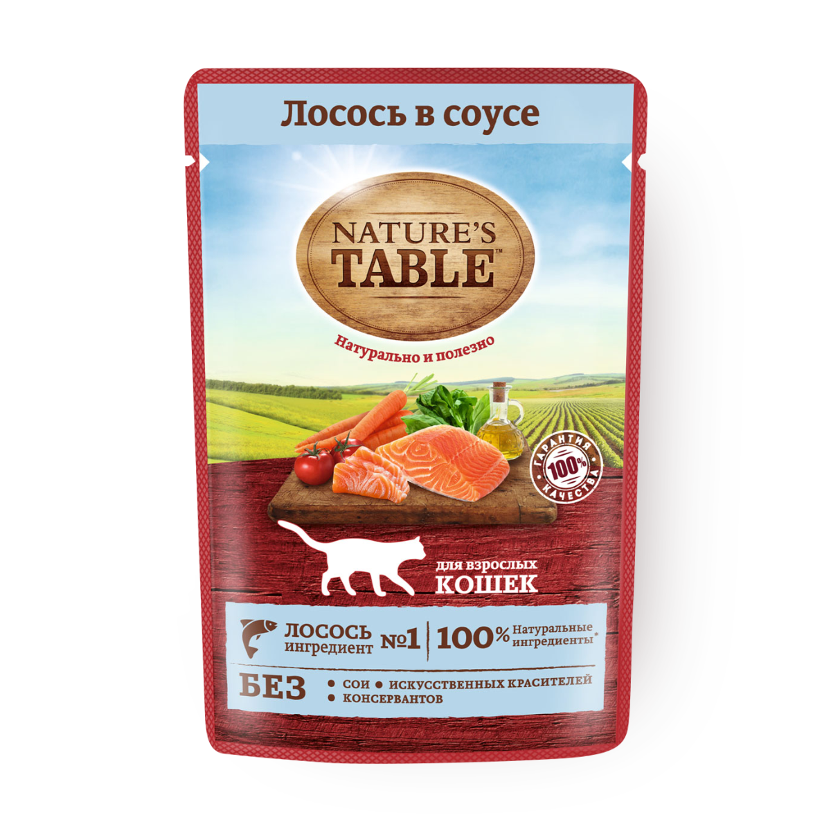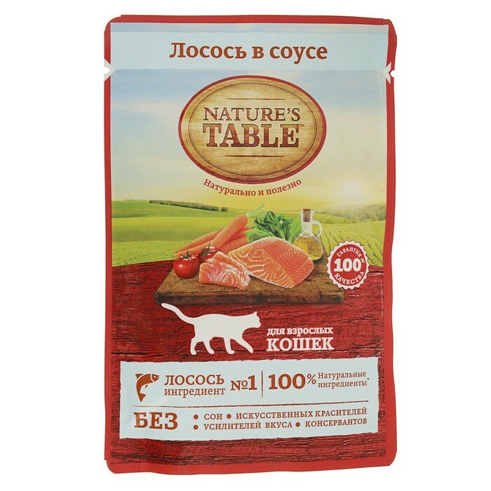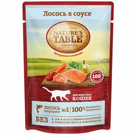 NATURE'S TABLE для взрослых кошек с лососем в соусе пауч 85 гр NEW 85 гр х 4 шт