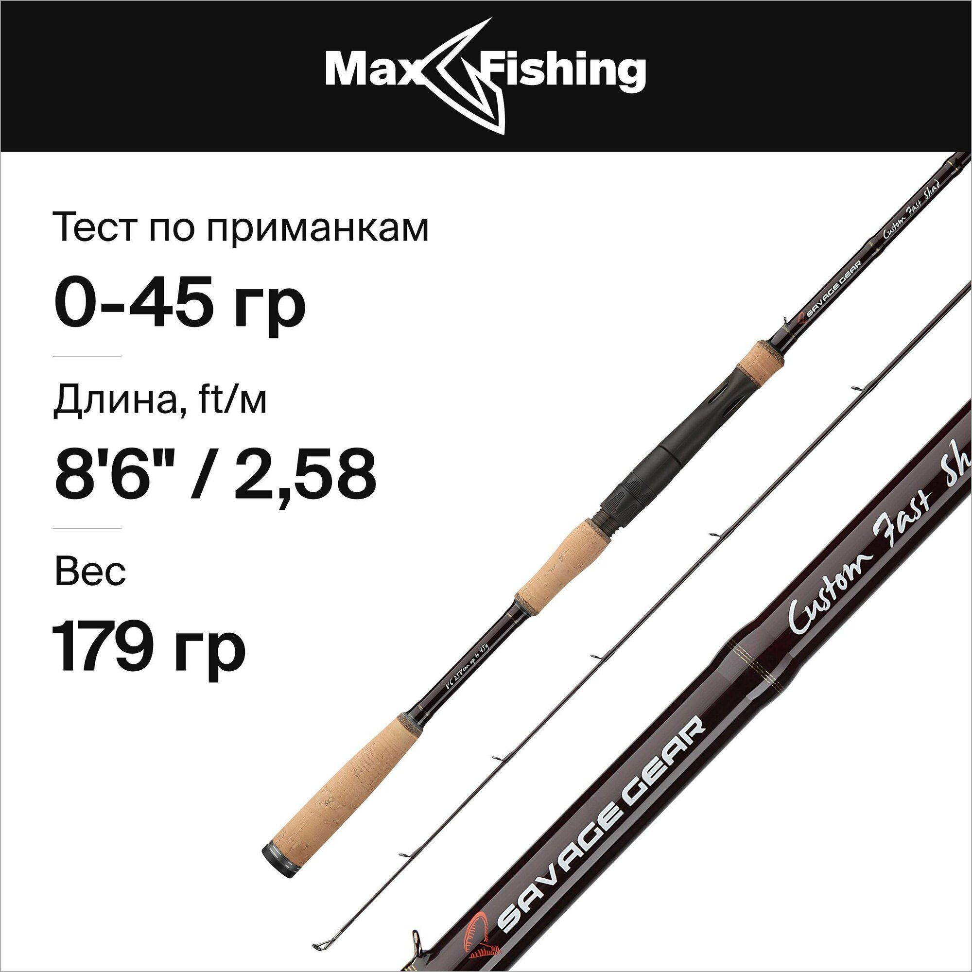 Спиннинг для рыбалки Savage Gear Custom Predator Fast Shad 8'6"/2,58м max 45гр, 258 см, для ловли окуня, щуки, судака, жереха, удилище спиннинговое интересное: