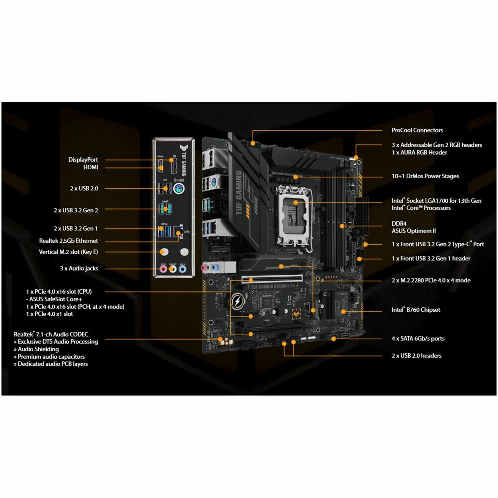 ASUS TUF GAMING B760M-E D4 (Socket 1700, mATX, 4xDDR4(128GB)