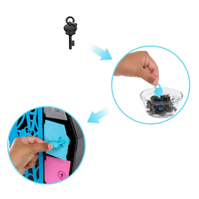 | Комплектация | 1 шкафчик для хранения вещей, 1 кукла Фрэнки Штайн, 4 ключа Color Reveal, а также разнообразная одежда и аксессуары |
