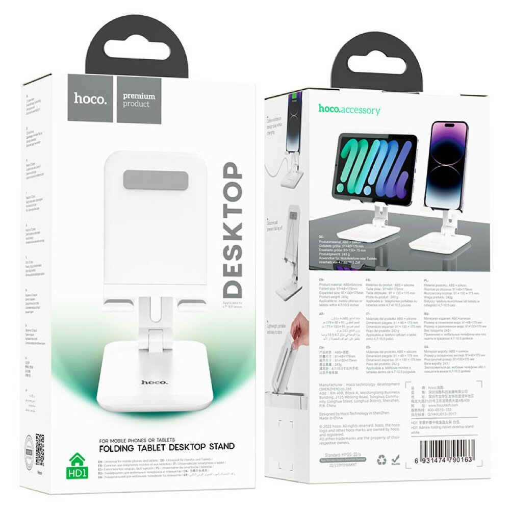 Подставка для планшета Hoco HD1, настольная, для 4.7-10,5 дюймов, белая