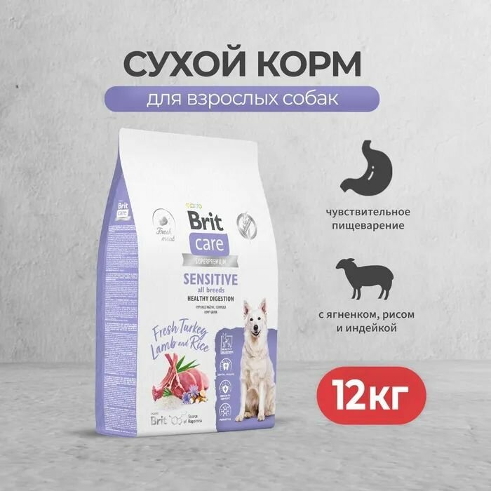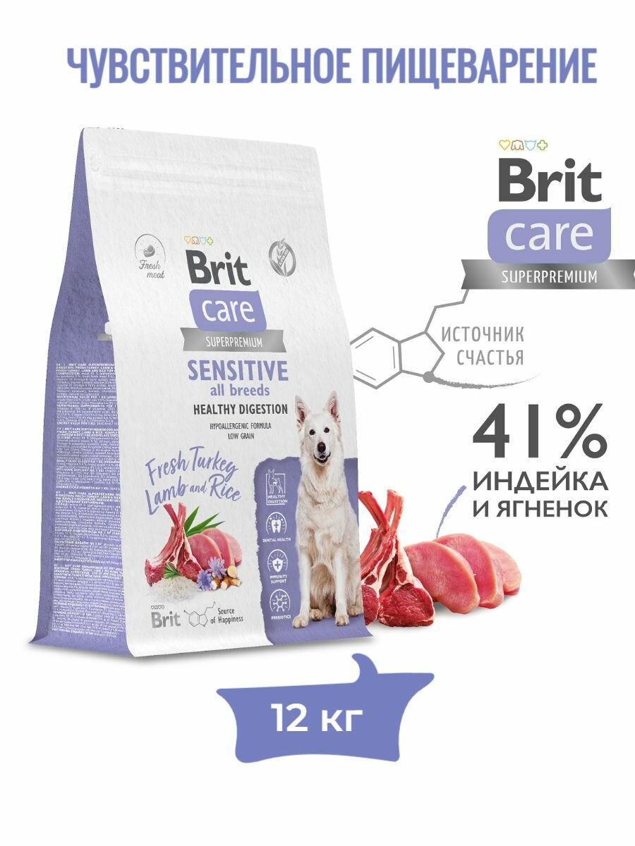 Brit Сухой корм Care Dog Adult Sensitive Healthy Digestion для взрослых собак всех пород с индейкой и ягненком, 12кг 12 кг