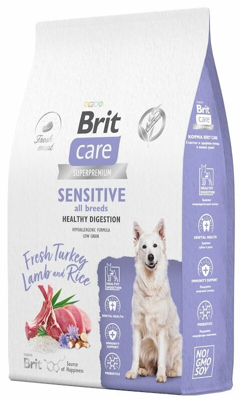 Brit Сухой корм Care Dog Adult Sensitive Healthy Digestion для взрослых собак всех пород с индейкой и ягненком, 12кг 12 кг