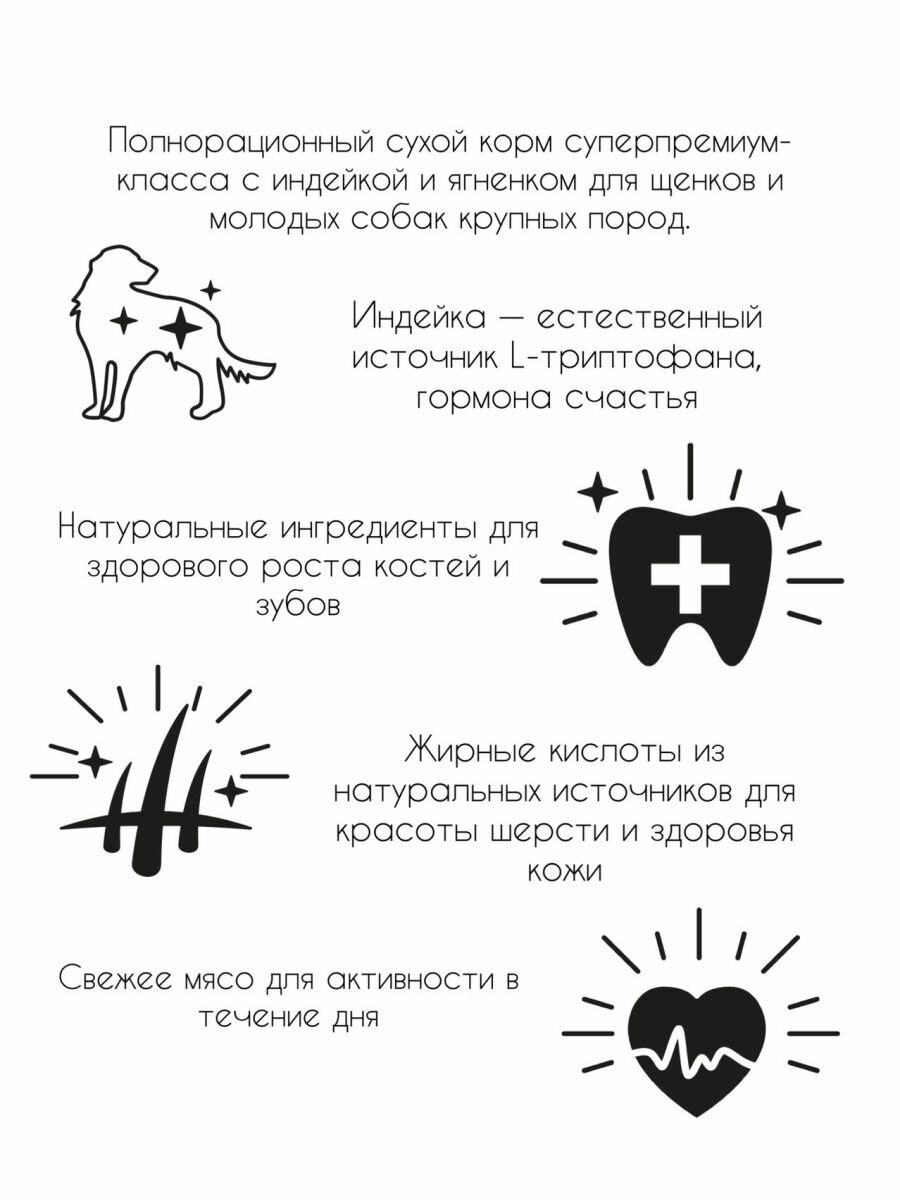 Сухой корм для щенков и молодых собак крупных пород, супер-премиум с индейкой и ягненком "Dog Puppy&Junior L Healthy Growth" 3 кг BRIT CARE