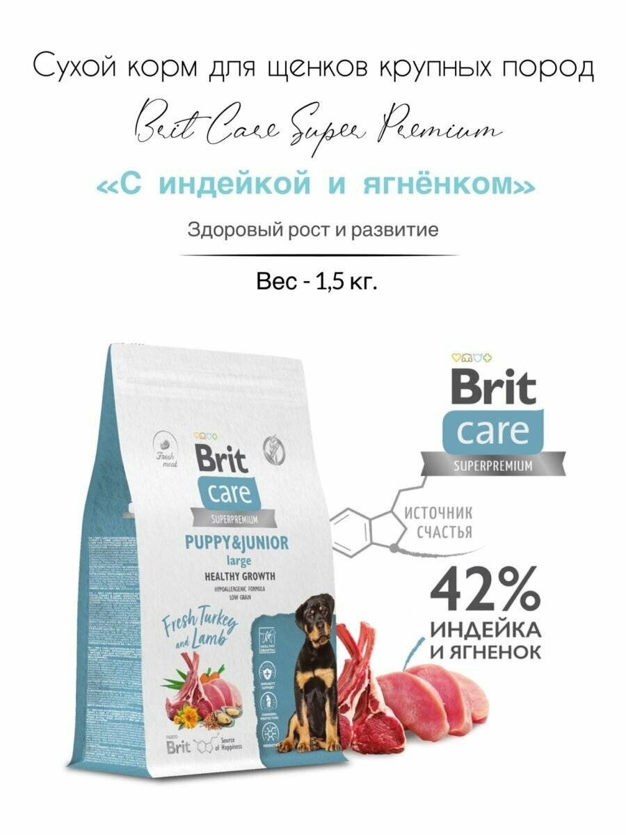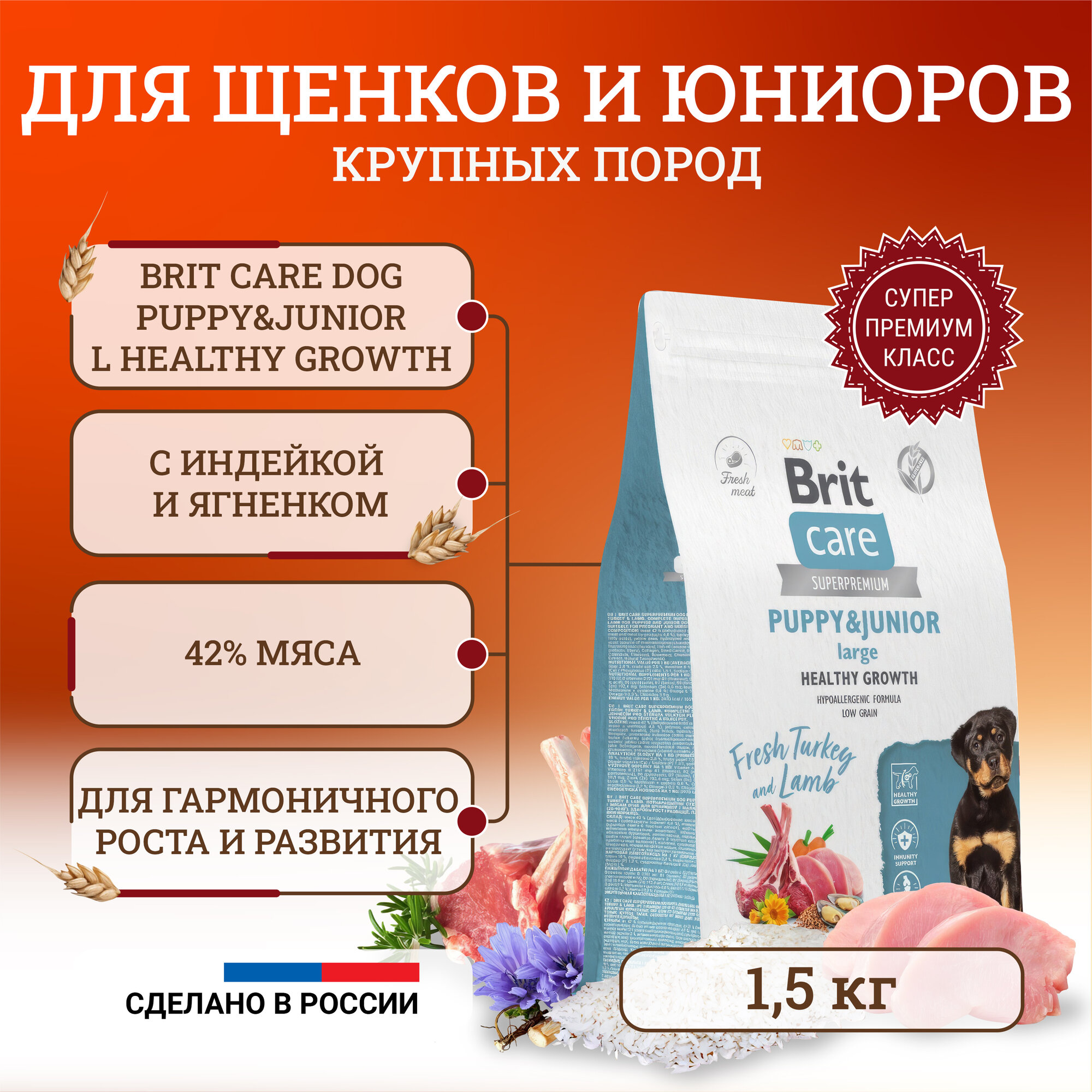 Купить Brit Care Dog Puppy&Junior L Healthy Growth сухой корм для щенков крупных пород, с индейкой и ягненком - 1,5 кг