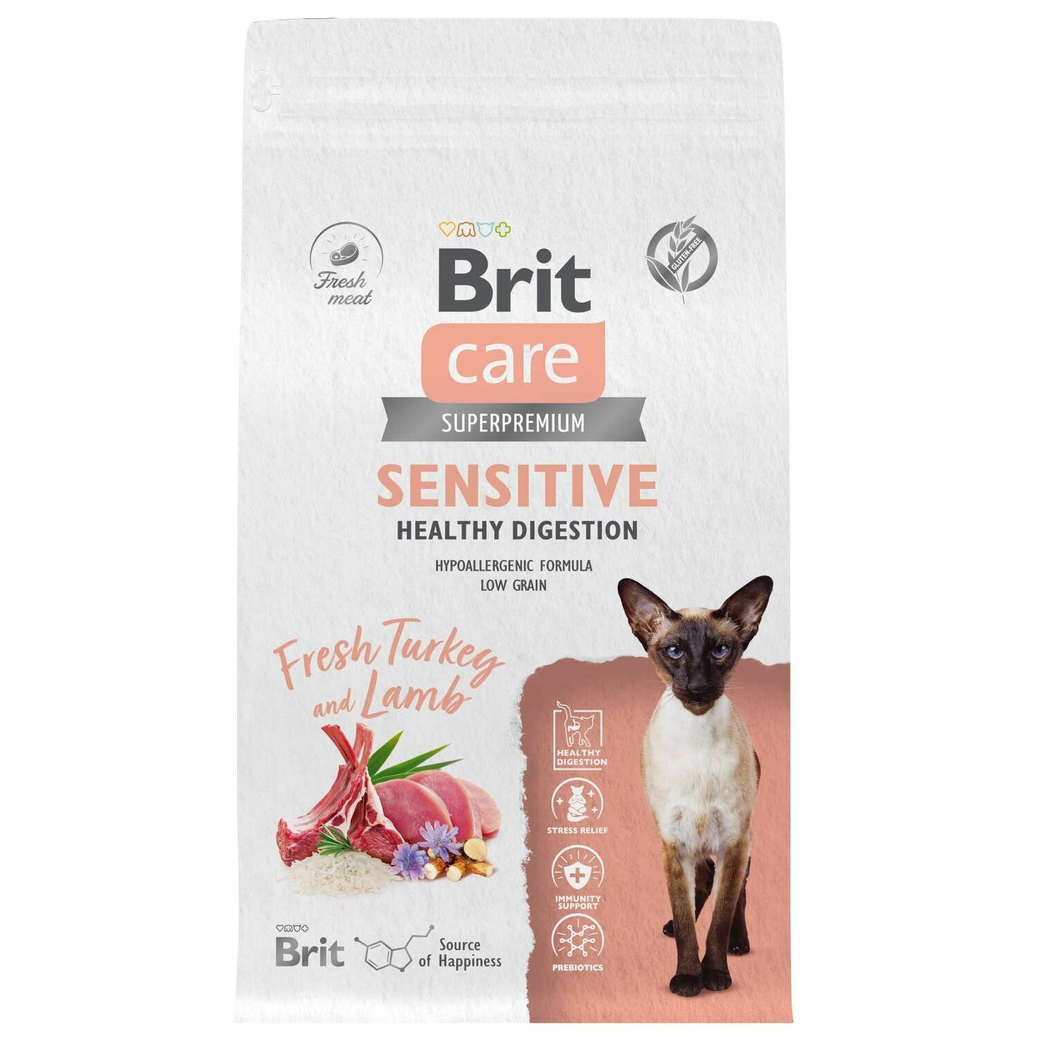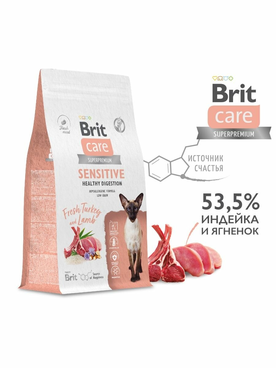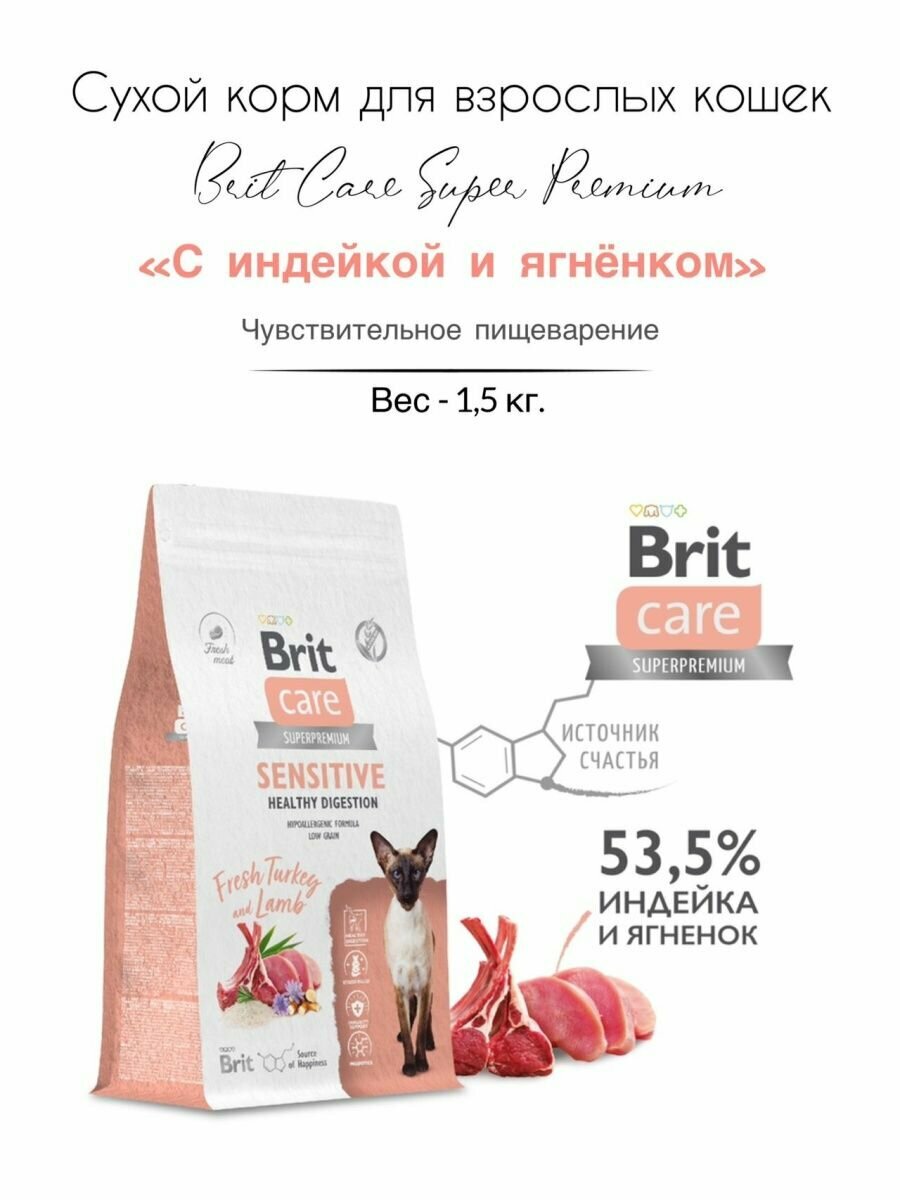 Купить Сухой корм BRIT CARE супер-премиум с индейкой и ягнёнком для взрослых кошек "Cat Sensitive Healthy Digestion" 1,5 кг