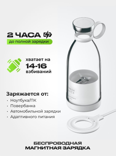Блендер портативный оригинал FRESH JUICE с беспроводной зарядкой USB (Белый) интересное: