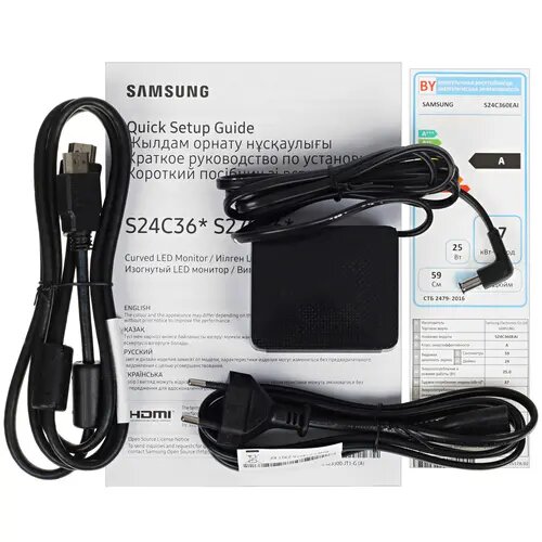 | Дополнительная информация | Изогнутый экран (1800R). AMD FreeSync. . . Модель: LS24C360EA. Вход HDMI: 1. Настольная подставка: в комплекте. Вход 3.5 мм аудио. VESA: 75. Вход D-Sub видео |