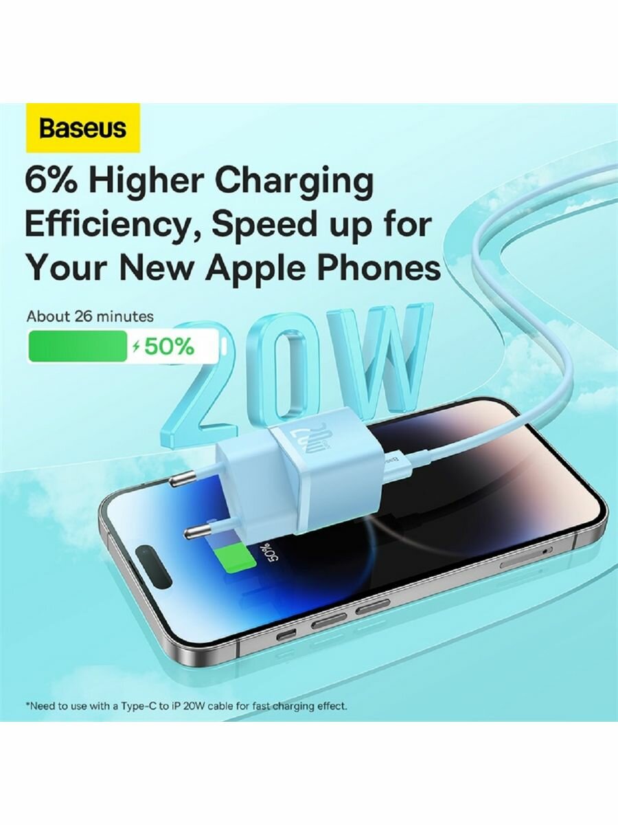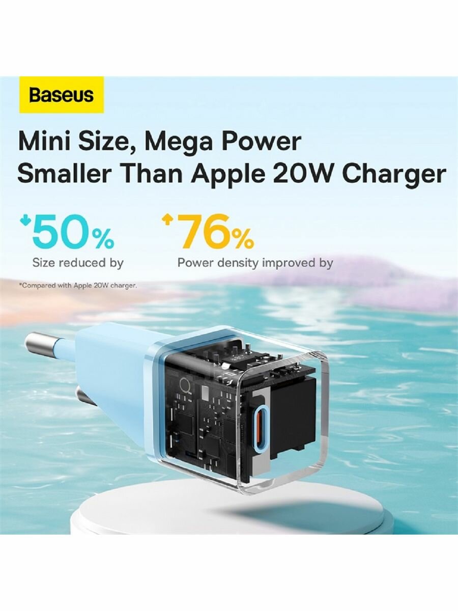 Зарядное устройство Baseus GaN5 Mini USB-C Fast Charger, 20Вт, быстрая зарядка, голубой