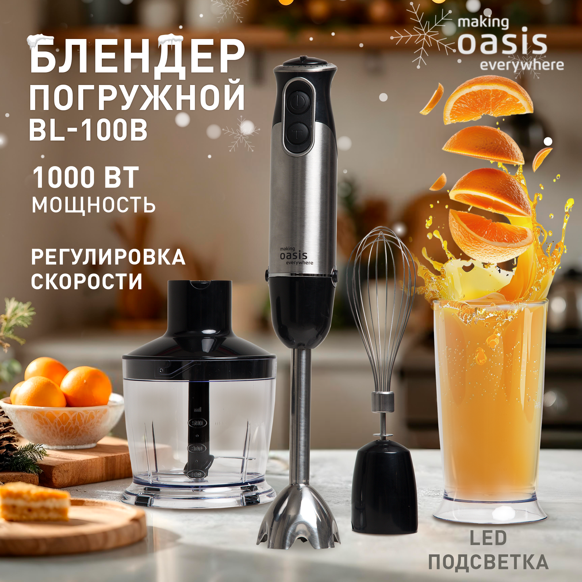 Блендер погружной ручной кухонный миксер making Oasis everywhere BL-100B, 1000 Вт