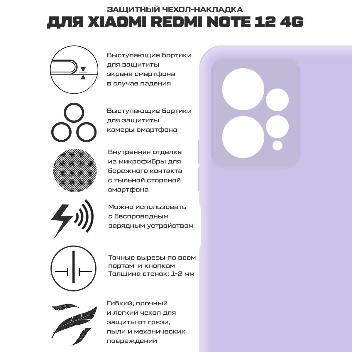 СохранитьЧехол для Xiaomi Redmi Note 12 (4G), накладка, лаванда, Krutoff Silicone Case, 446740 интересное: