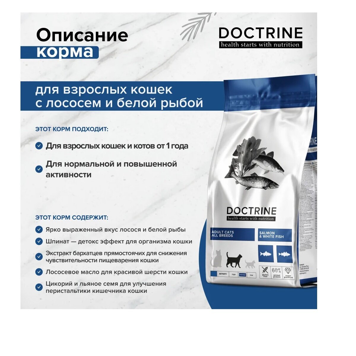 Сухой корм для кошек DOCTRINE с лососем и белой рыбой 3кг, супер премиум