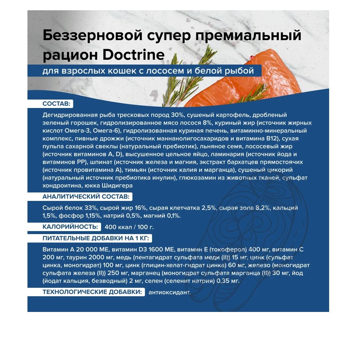 Сухой беззерновой корм DOCTRINE для кошек с лососем и белой рыбой