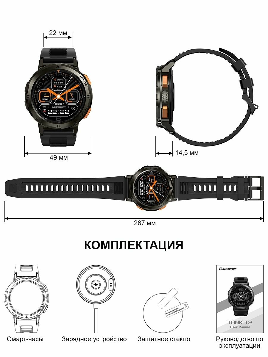 Умные часы Kospet TANK T2 black интересное: