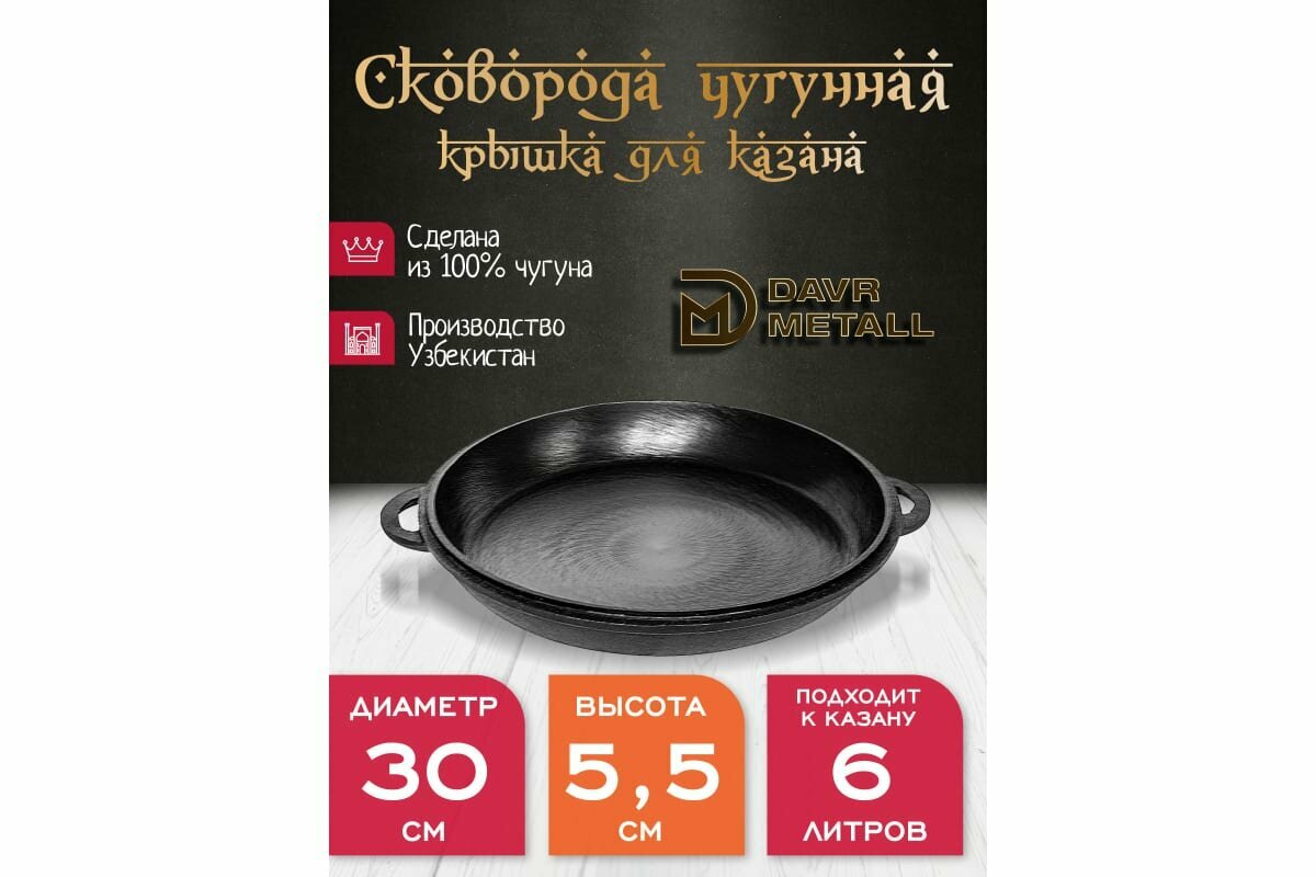 Davr Metall Крышка-сковорода davrmetall чугунная, диаметр 30 см, для казана 6 литров крыш(сков)6л интересное: