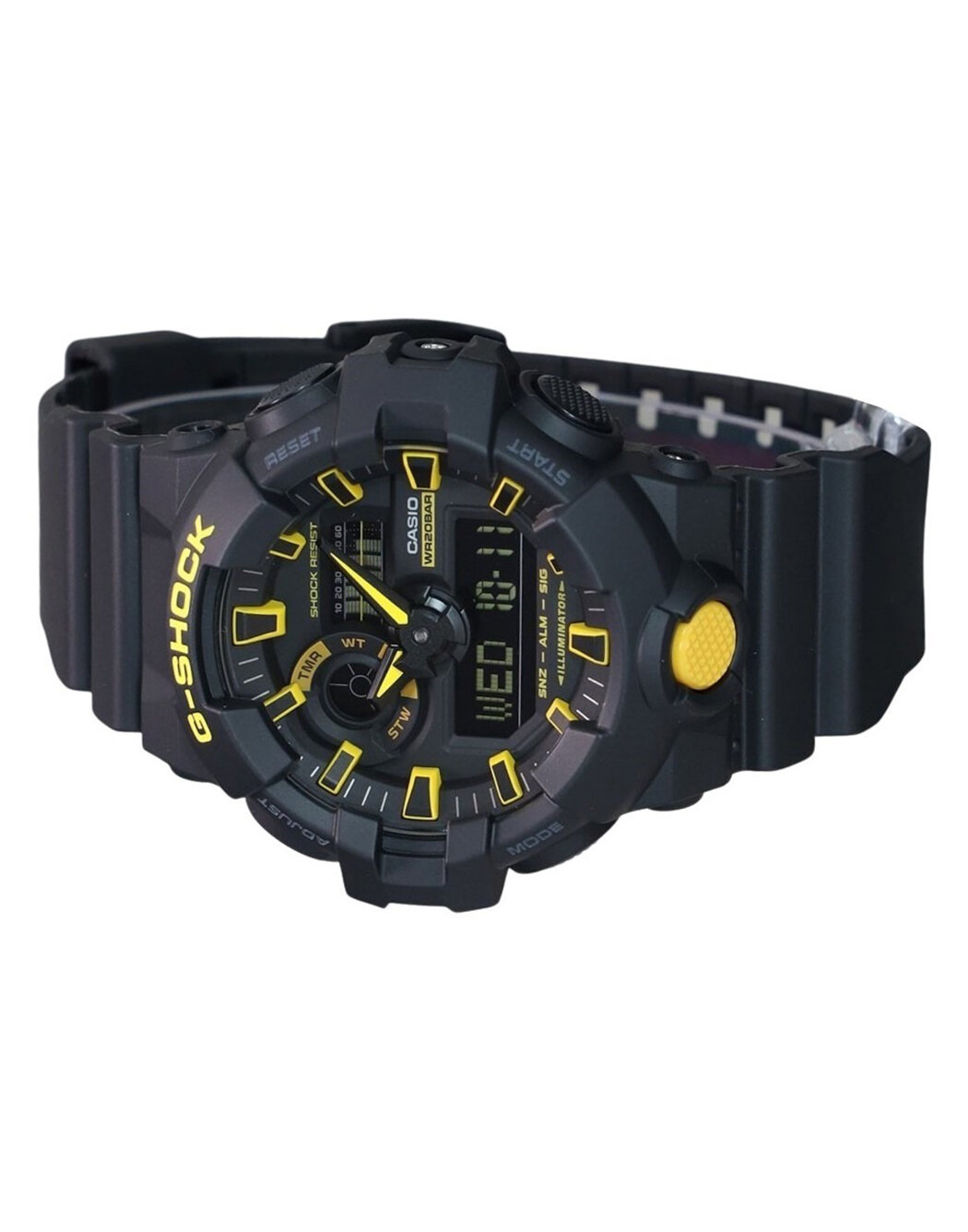 Наручные часы CASIO мужские GA-700-7A кварцевые, будильник, хронограф, секундомер, таймер обратного отсчета, водонепроницаемые, противоударные, подсветка дисплеябелый