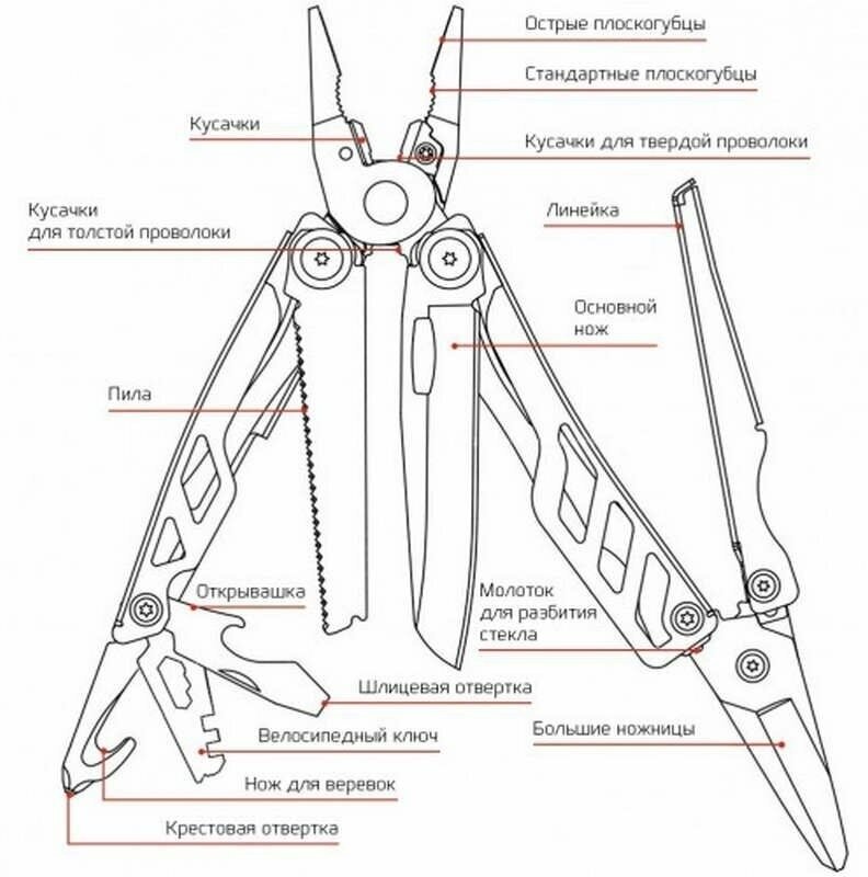| Инструменты (функции) | винтовая отвёртка / ножницы / плоскогубцы |