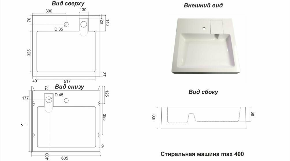 Раковина над стиральной машиной MARKO Стандарт 550 интересное: