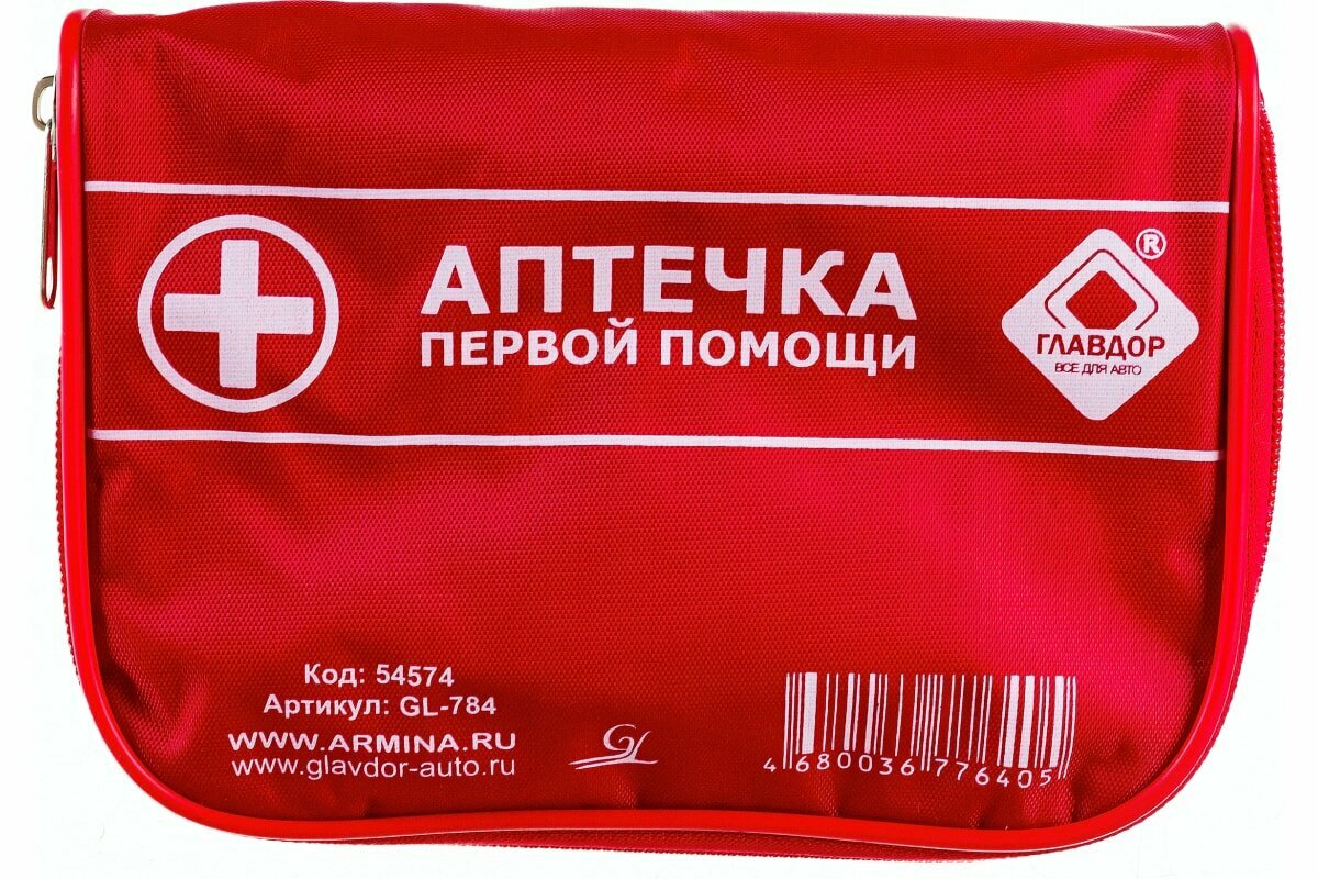 Аптечка автомобильная первой помощи "главдор" GL-784 (компл. перевязочных средств) в красн. сум.