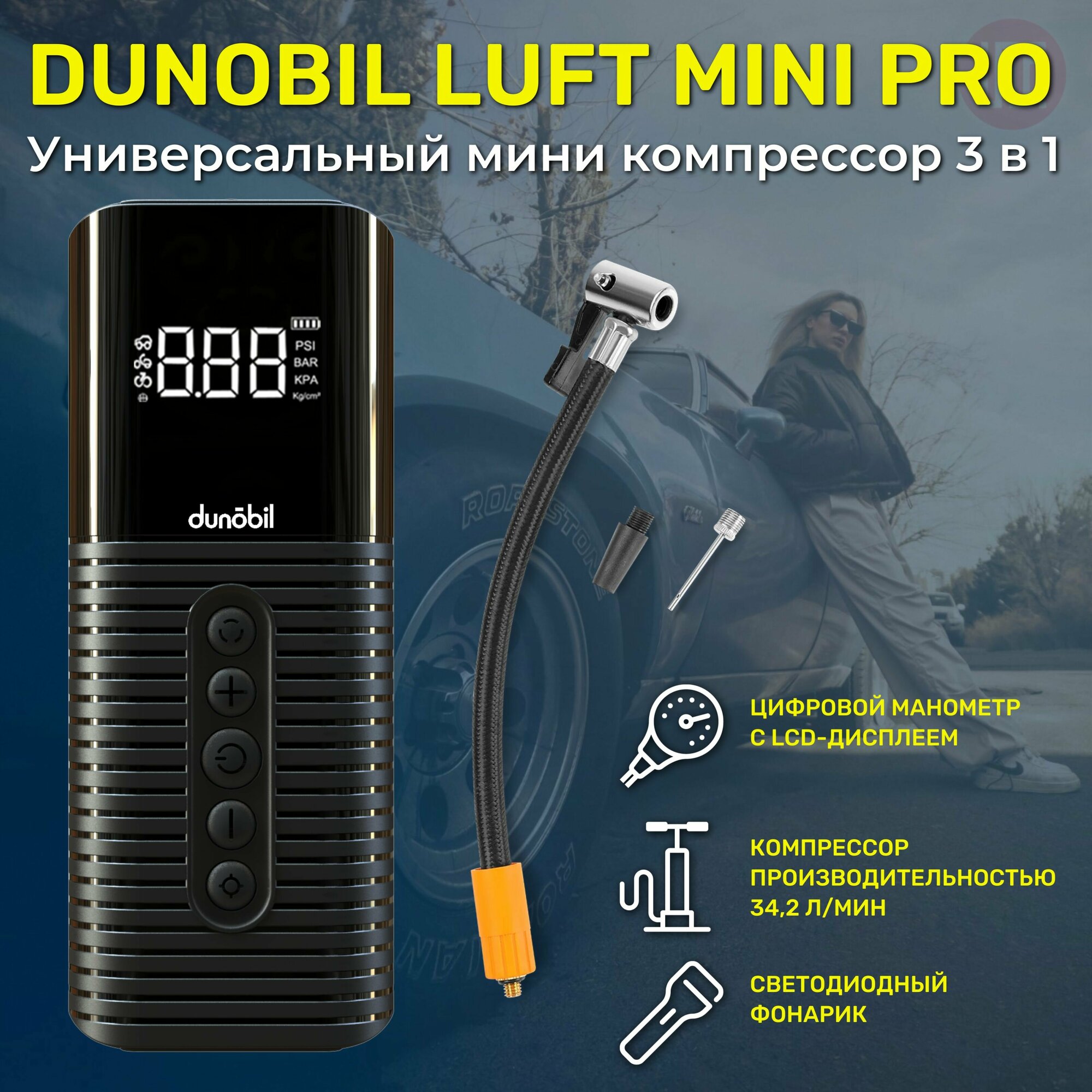 Dunobil Автомобильный компрессор Dunobil luft mini pro 34.2л/мин шланг 0.20м