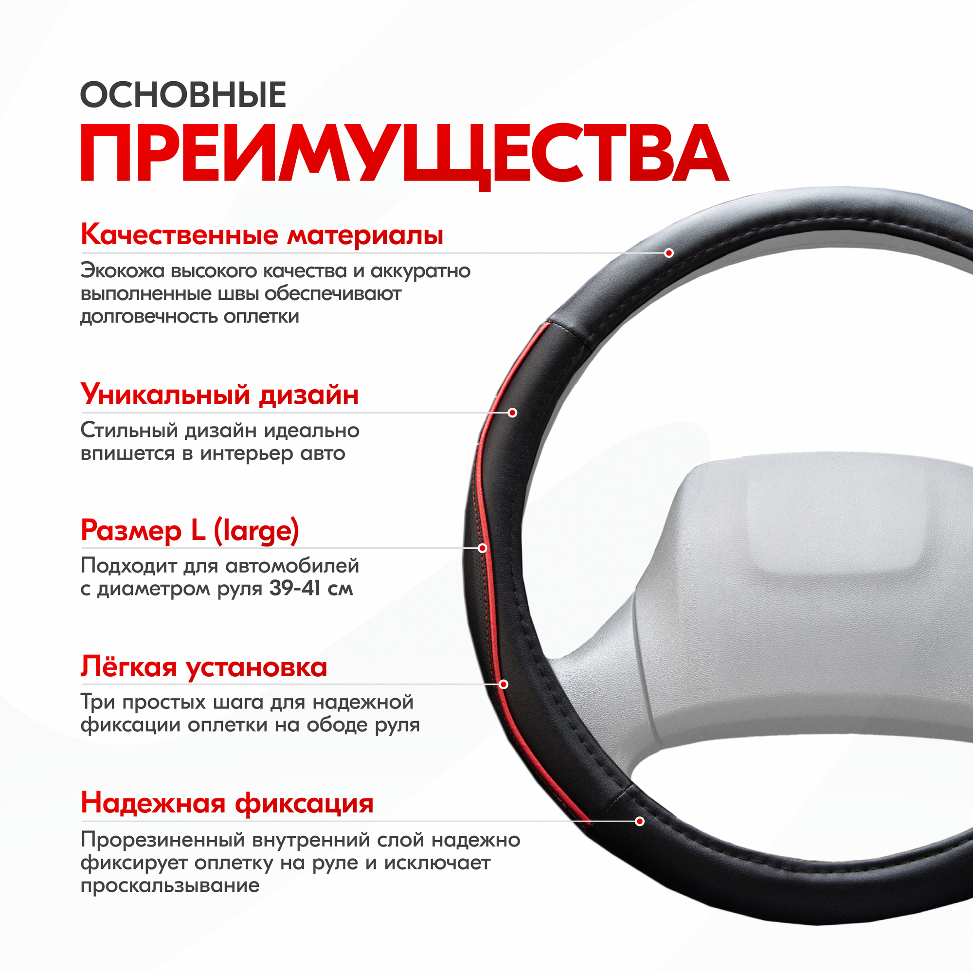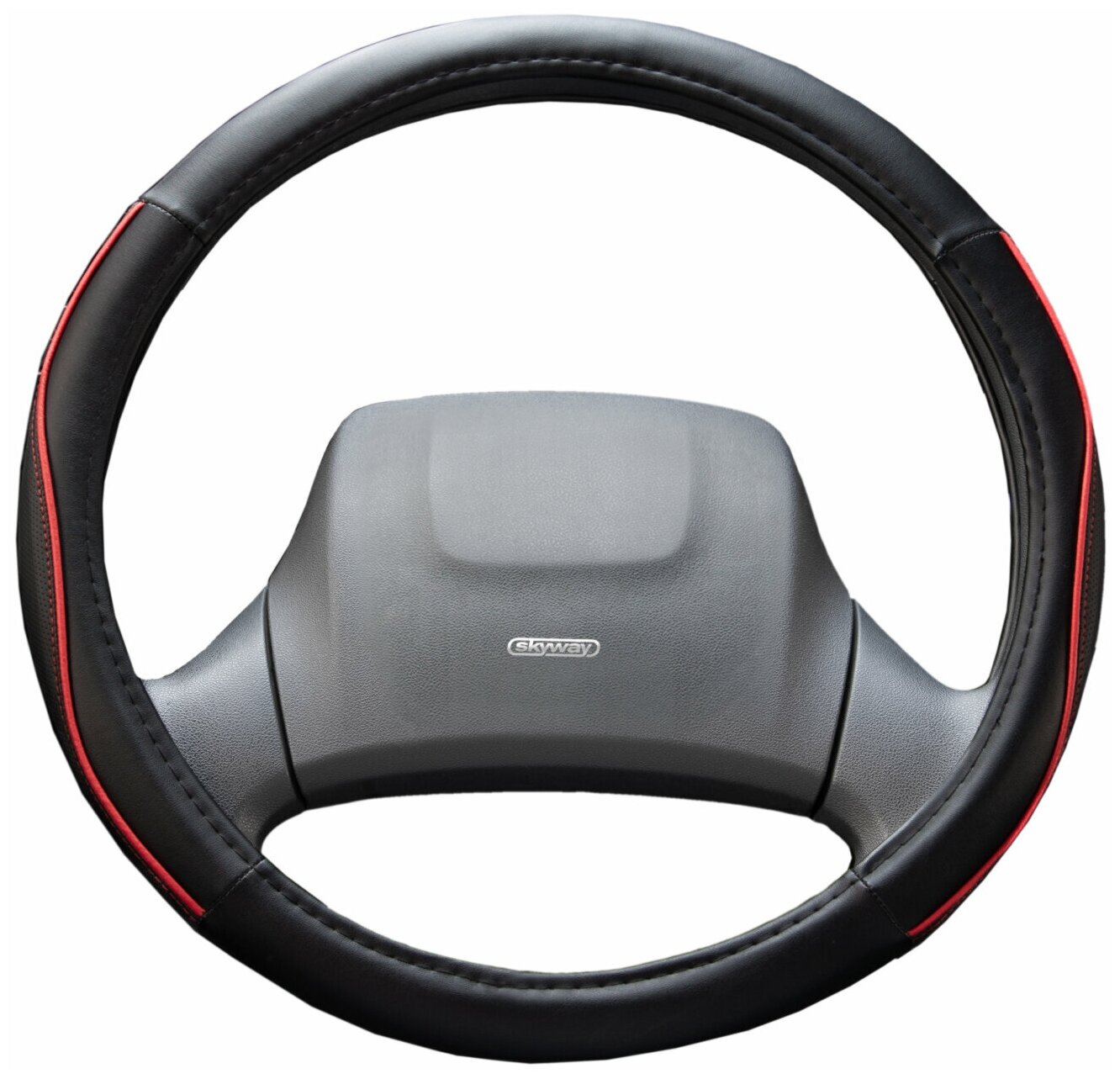 Оплетка руля SKYWAY Combo-7 L 39/40/41 см, экокожа, черно-красная, S01102304