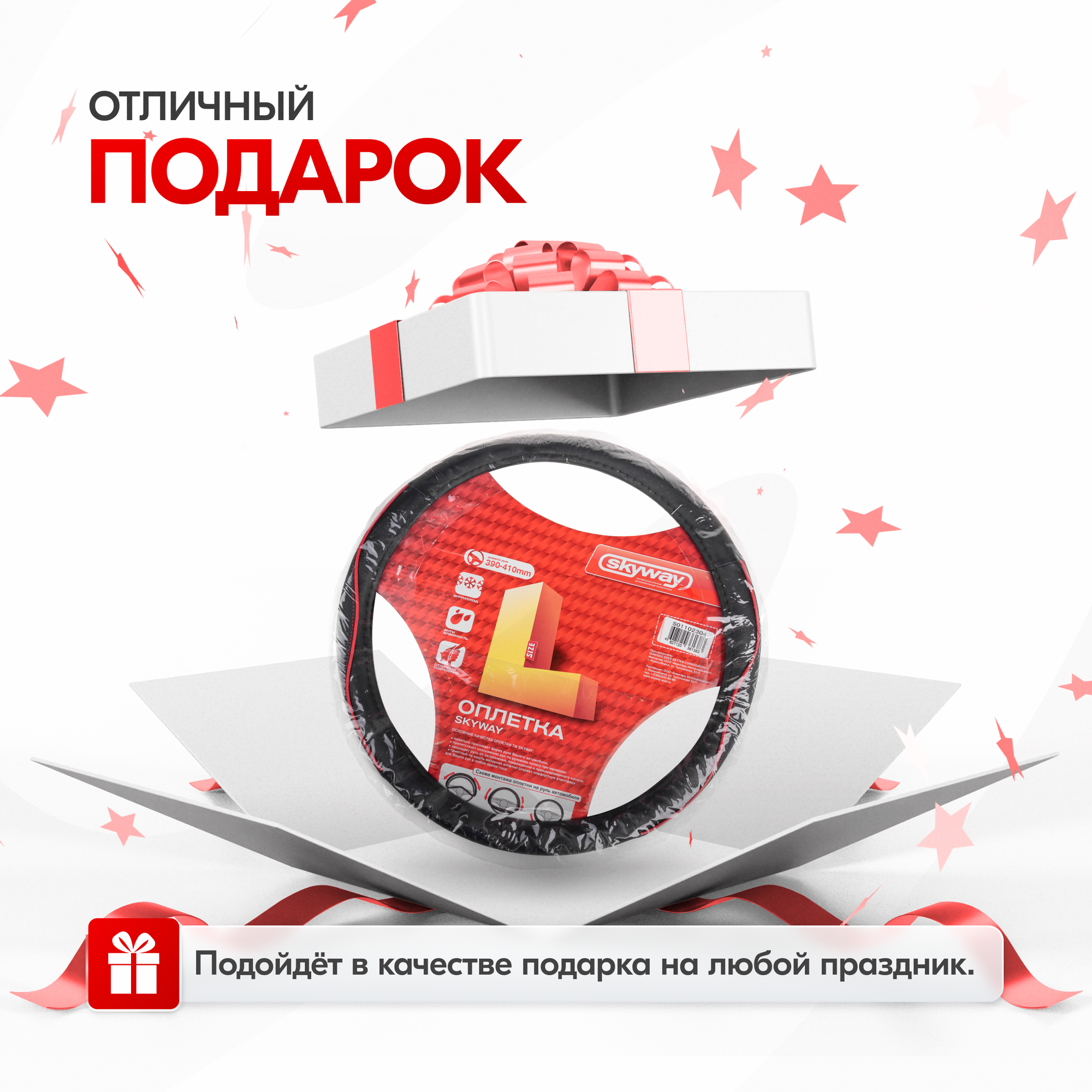 Купить Оплетка на руль Combo-7 SKYWAY L (39-41) черный; красный экокожа, S01102304