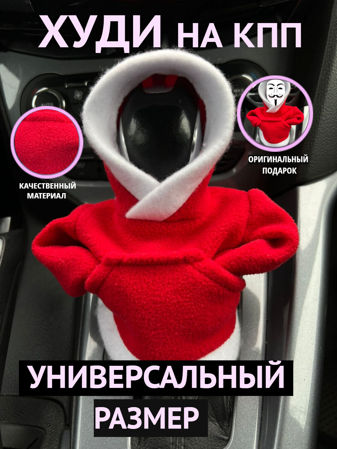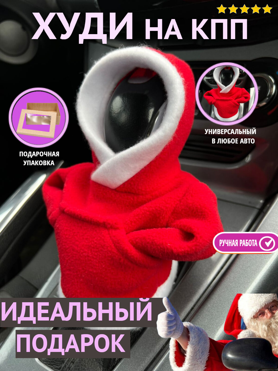 Универсальный аксессуар/чехол/худи/толстовка Autozoom на рычаг/ручку коробки переключения передач (для КПП), цвет красный, флис.