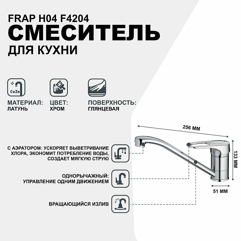 Ниже Вы можете прочитать отзывы на Смеситель для кухни Frap F4204, ознакомится с подробными характеристиками, посмотреть интересные обзоры и фотографии на Смеситель для кухни Frap F4204.