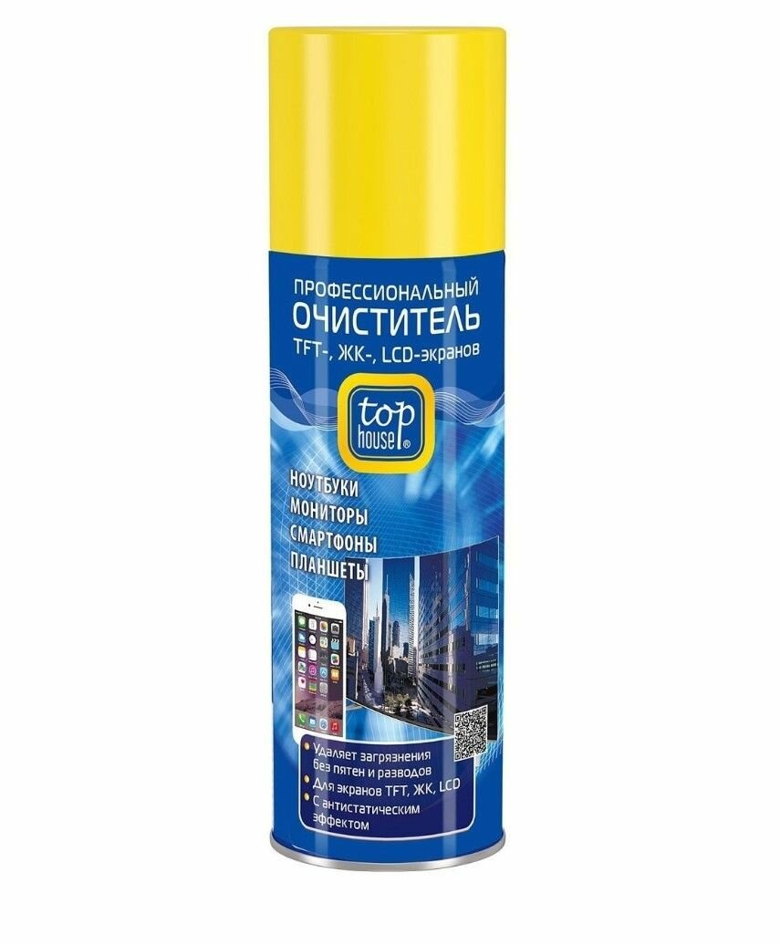TOP HOUSE Профессиональный очиститель TFT-, ЖК-, LCD- экранов, 200 мл (аэрозоль). интересное: